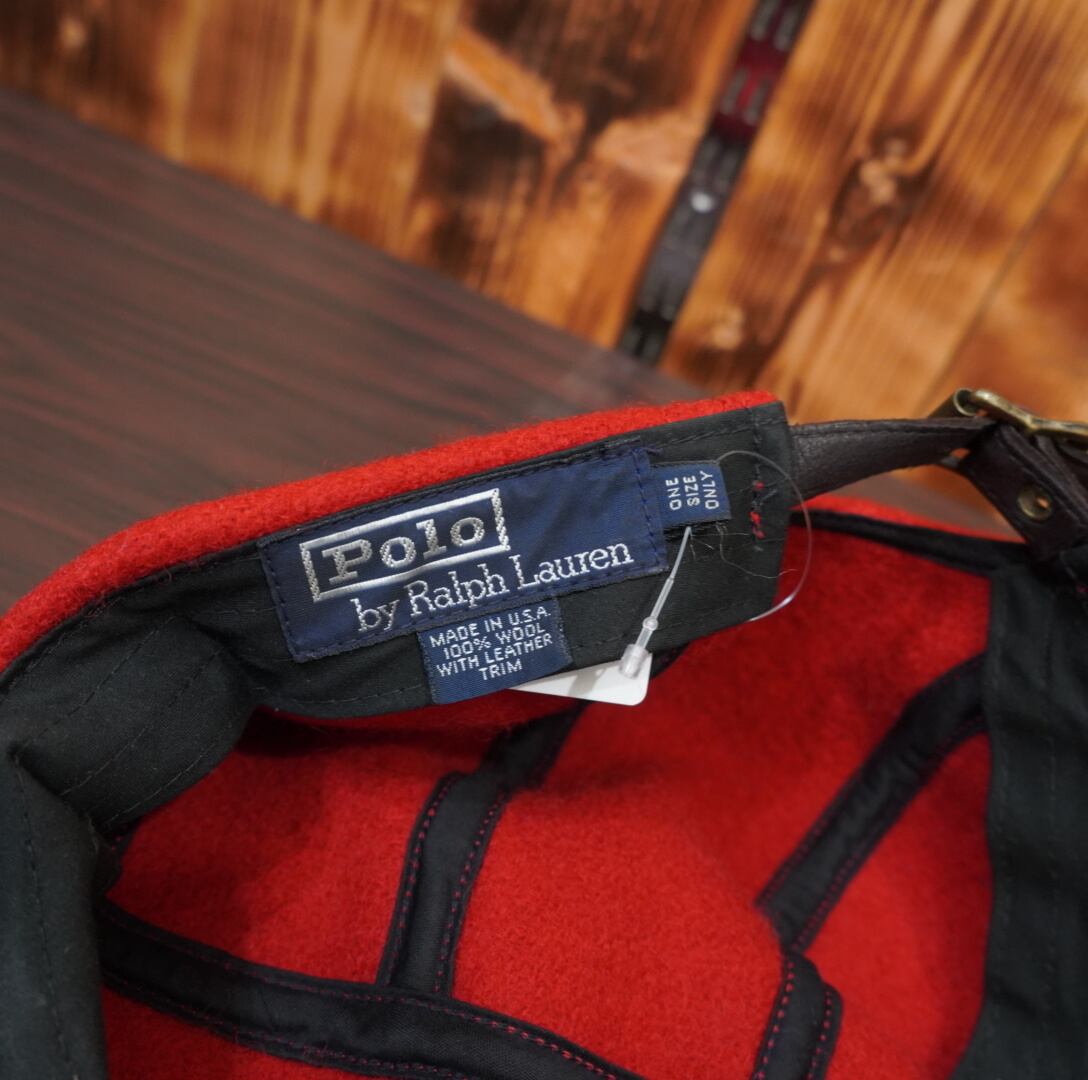 90s ralphlauren POLOSPORTSMAN キャップ レザーブリム ロングビル usa製/つばレザー ラルフローレン 帽子 ヴィンテージ