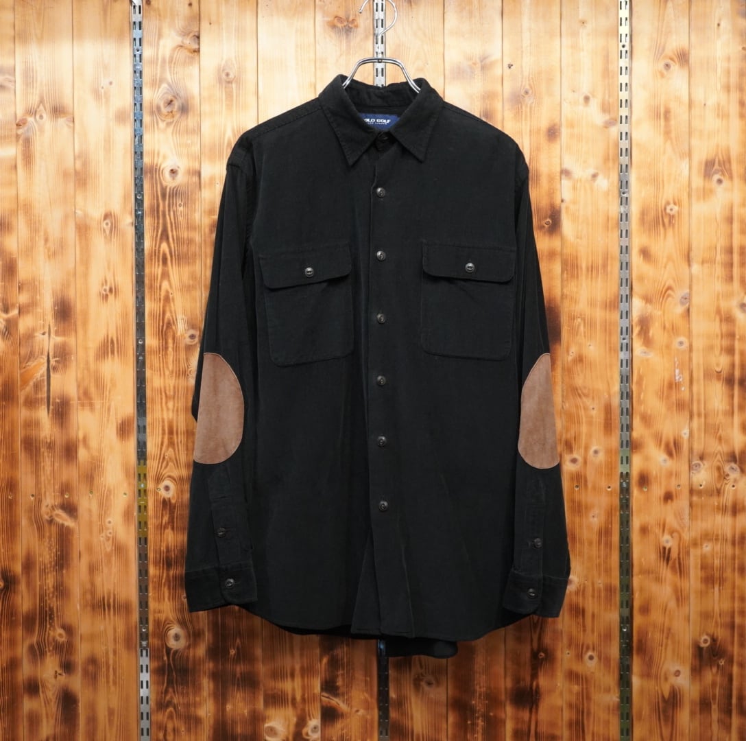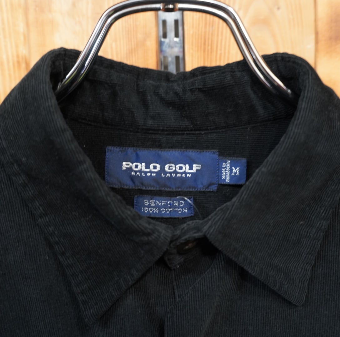 90s POLOGOLF ralphlauren benford コーデュロイ シャツ M/黒 ラルフローレン エルボーパッチ ブラック 黒 ポロゴルフ