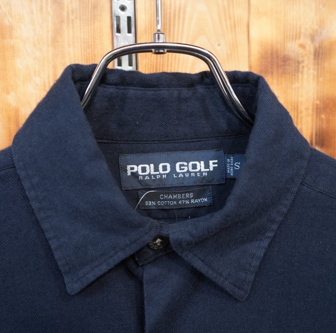 90s POLOGOLF ralphlauren ヘリンボーン コットン レーヨン シャツ S/chambers rayon ポロゴルフ ラルフローレン