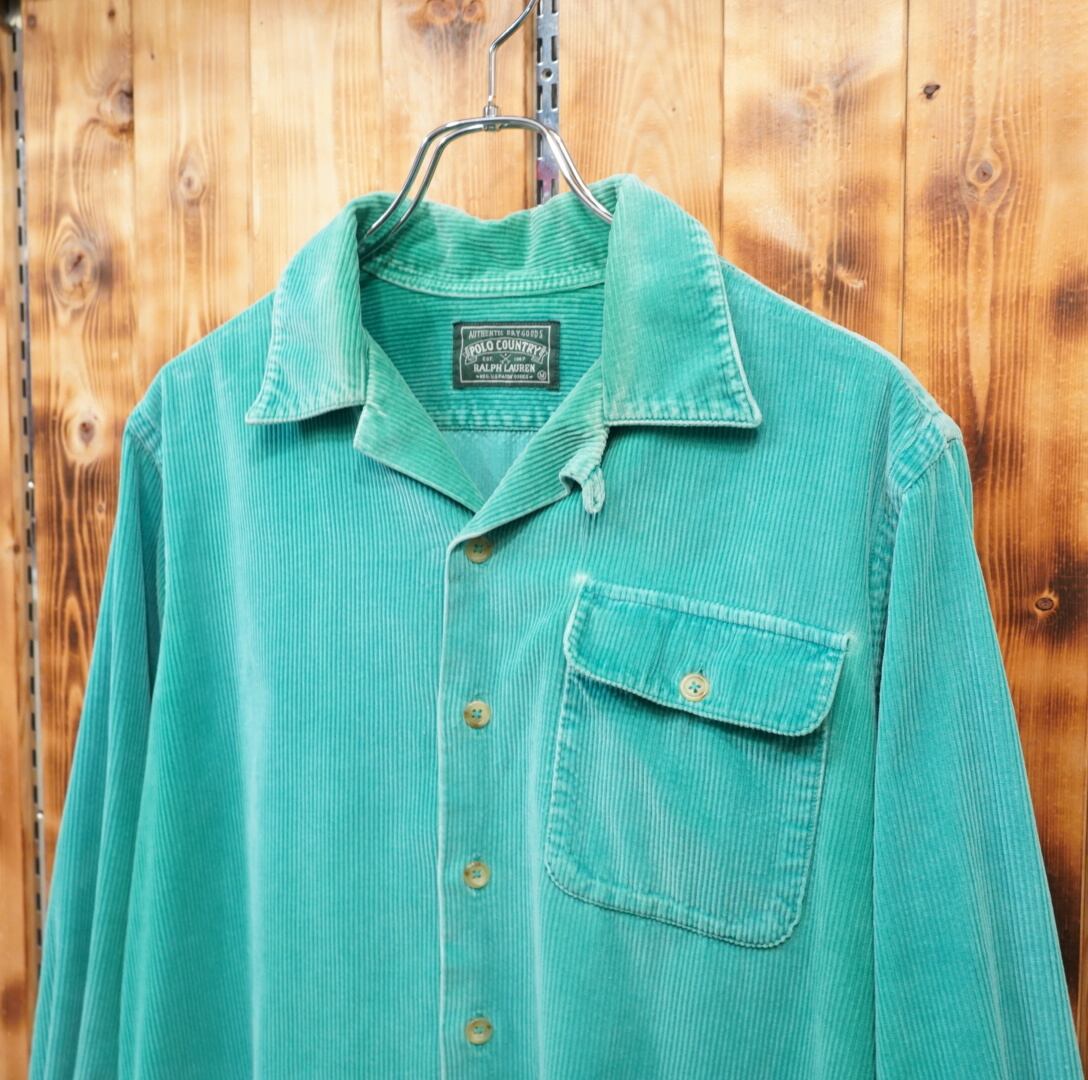 80s90s polocountry ralphlauren コーデュロイ オープンカラーシャツ M/ポロカントリー ラルフローレン ターコイズ