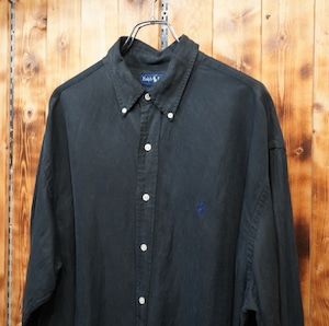 90s ralphlauren blake シルクリネン 長袖シャツ ブラック XL/ラルフローレン 黒
