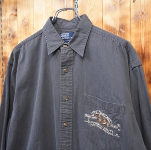 90s ralphlauren polosportsman 長袖シャツ M/ラルフローレン ポロスポーツマン ブラック ダークグレー 墨黒