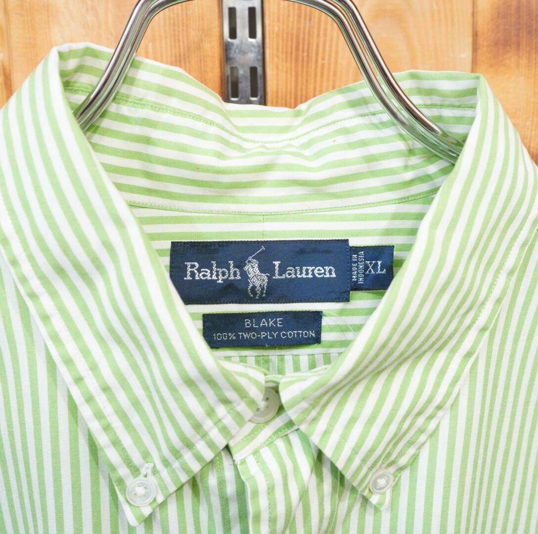 90s ralphlauren blake two-ply cotton ポニー無し ストライプ シャツ XL/ラルフローレン