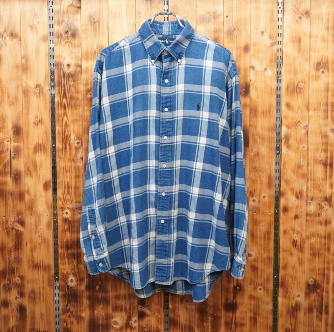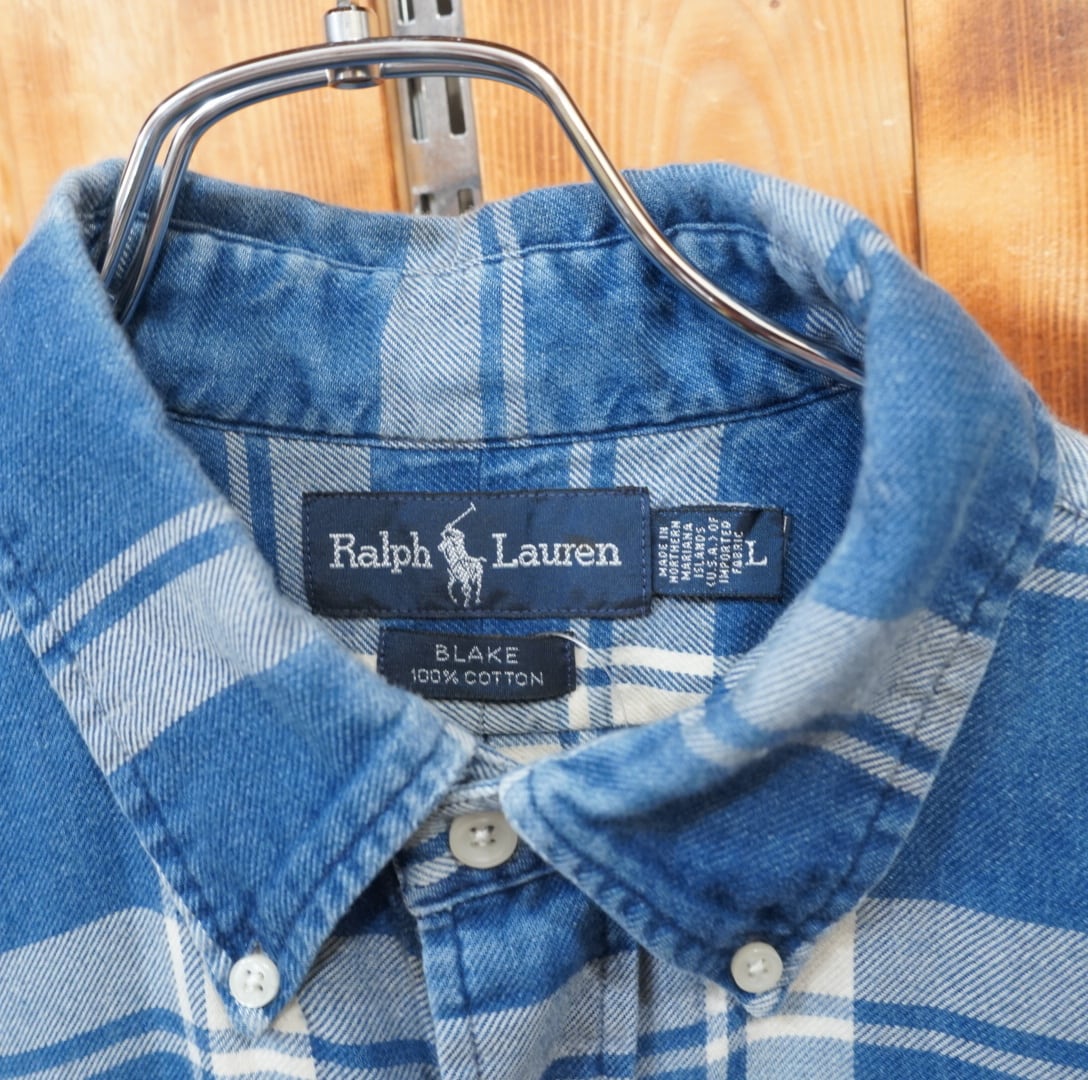 90s ralphlauren blake コットン シャツ L/ラルフローレン チェック