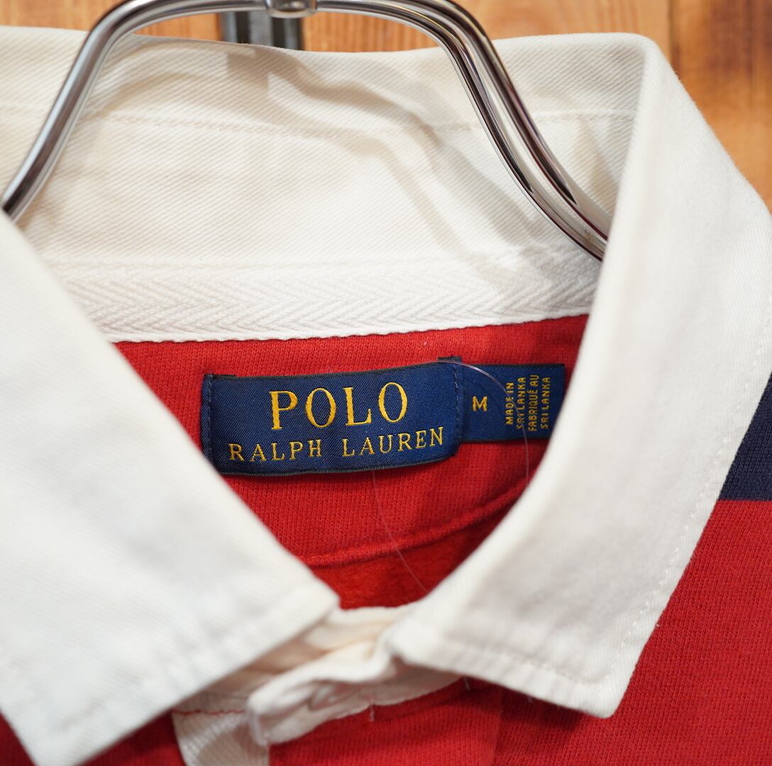 ralphlauren ボーダー ラガーシャツ M/ラルフローレン 赤