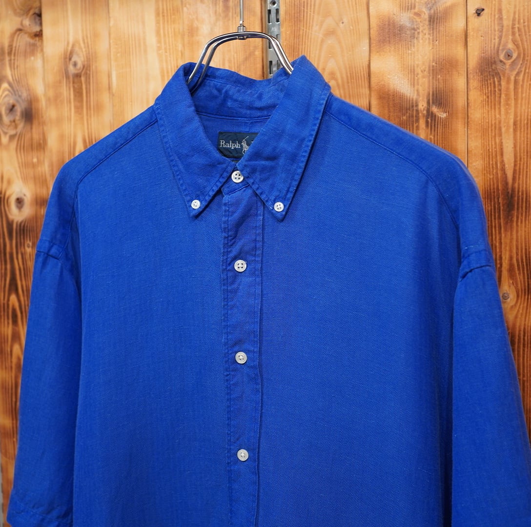 90s ralphlauren blake ポニー無し シルクリネン ヘリンボーン シャツ L/ラルフローレン
