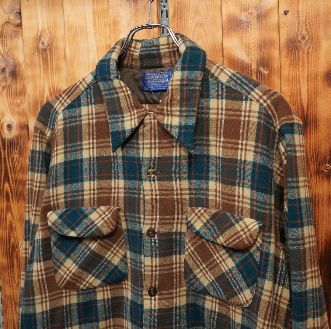 pendleton 70s board shirt チェック L/開襟シャツ オープンカラーシャツ ボードシャツ ブラウン グリーン