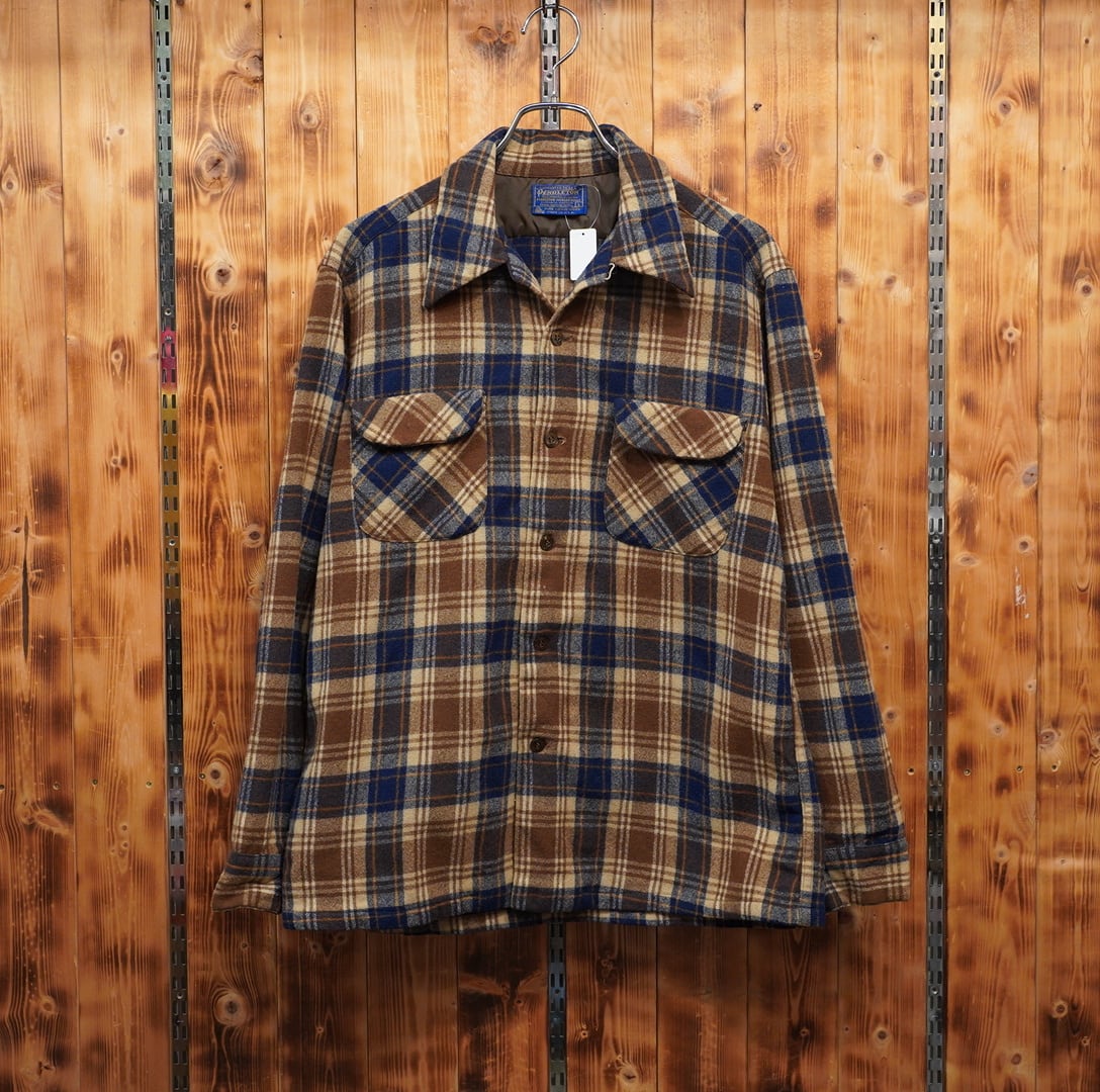pendleton 70s board shirt チェック L/開襟シャツ オープンカラーシャツ ボードシャツ ブラウン ネイビー