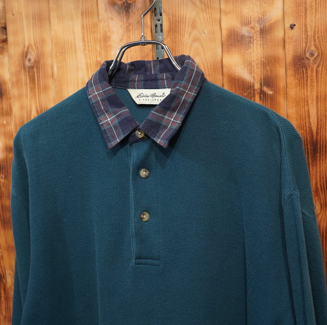 90s00s eddie bauer 白タグ 長袖 厚手 ポロシャツ S(大きめ) エディバウアー