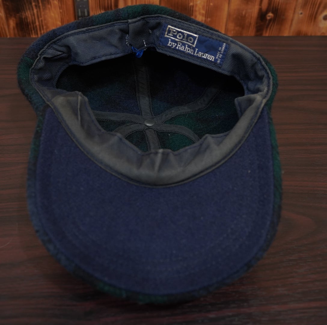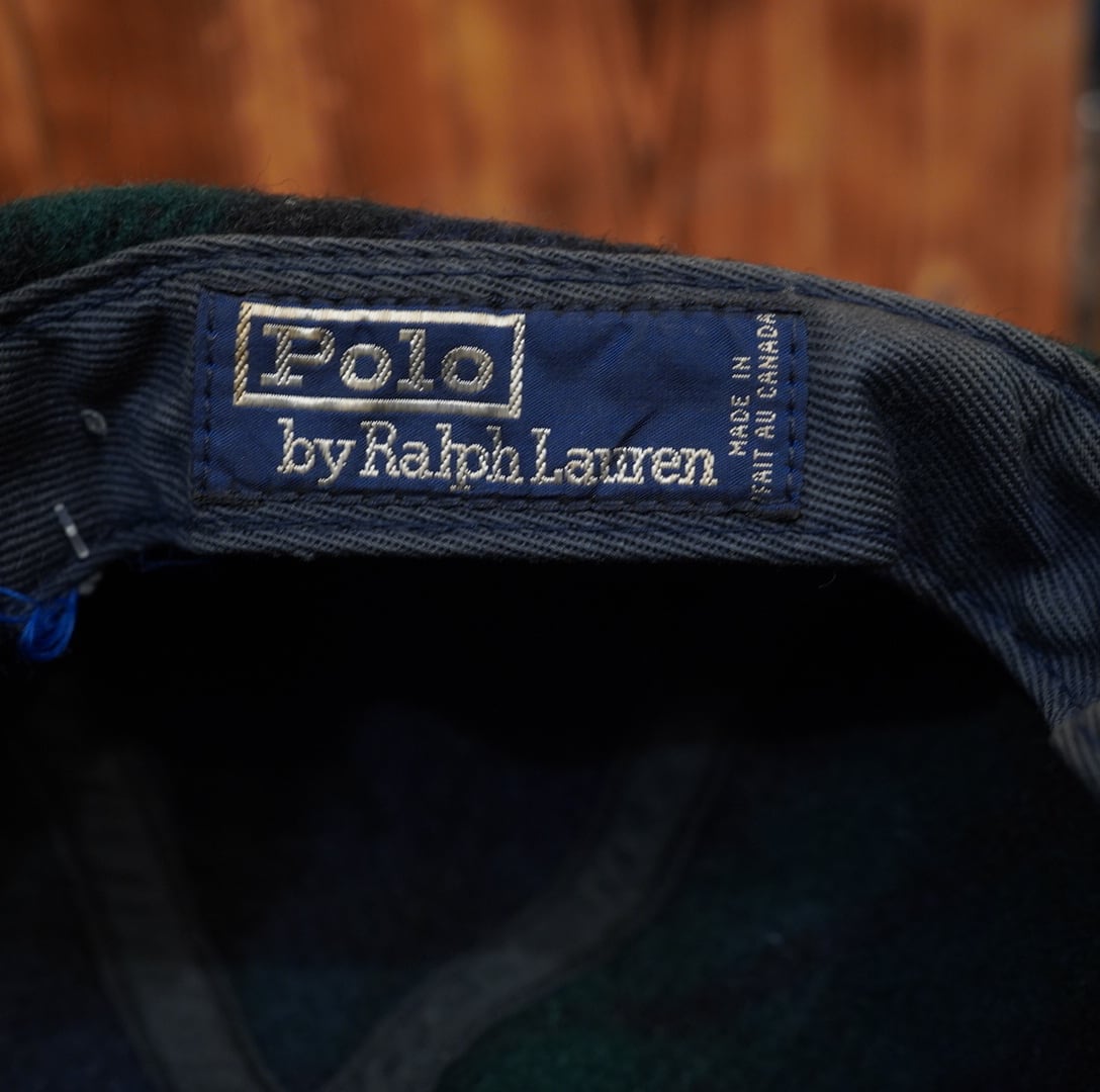 80s90s ralphlauren カナダ製 ロングビル ウール ブラックウォッチ キャップ 帽子 59〜60cm程度/ラルフローレン