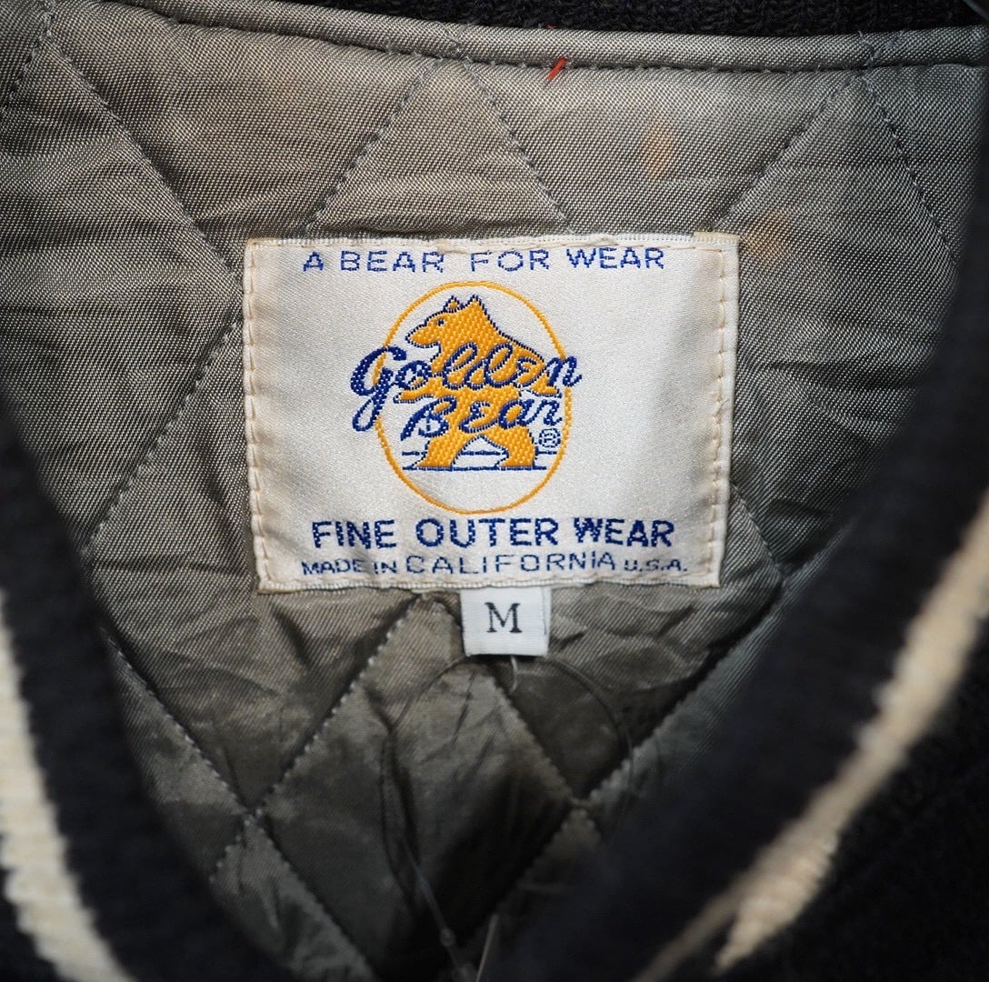 70s80s golden bear 袖レザースタジャン M/黒白 ゴールデンベアー USA製