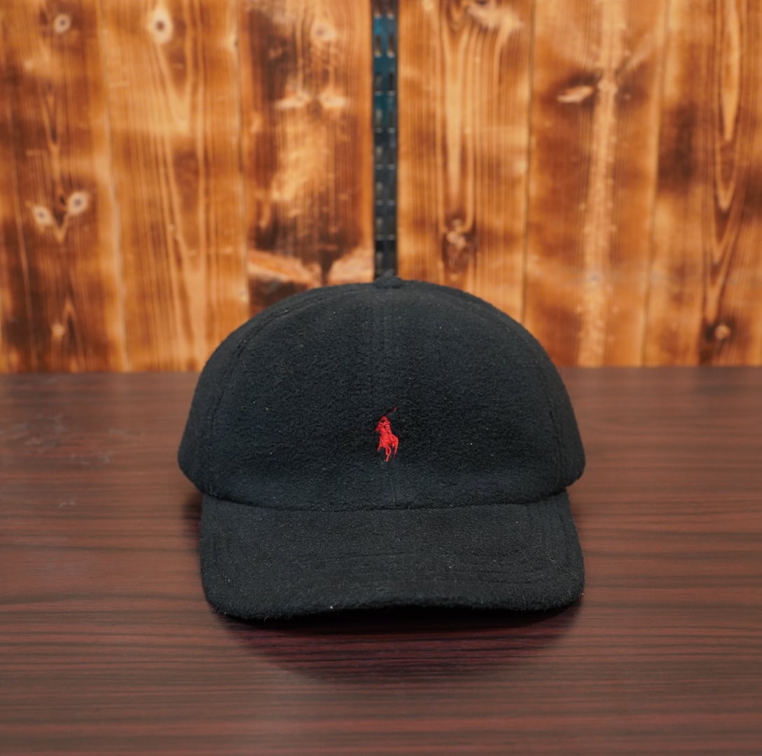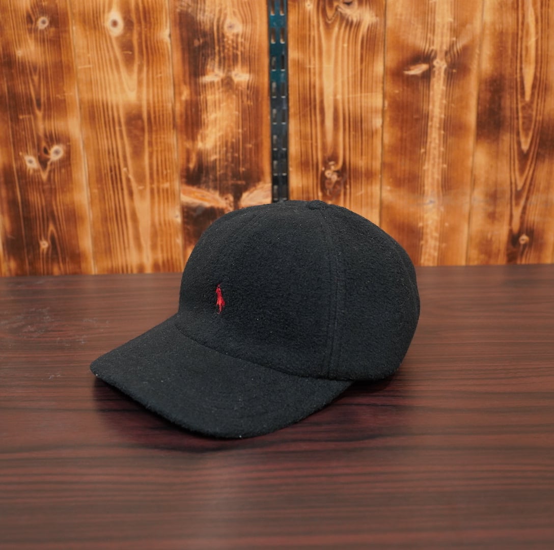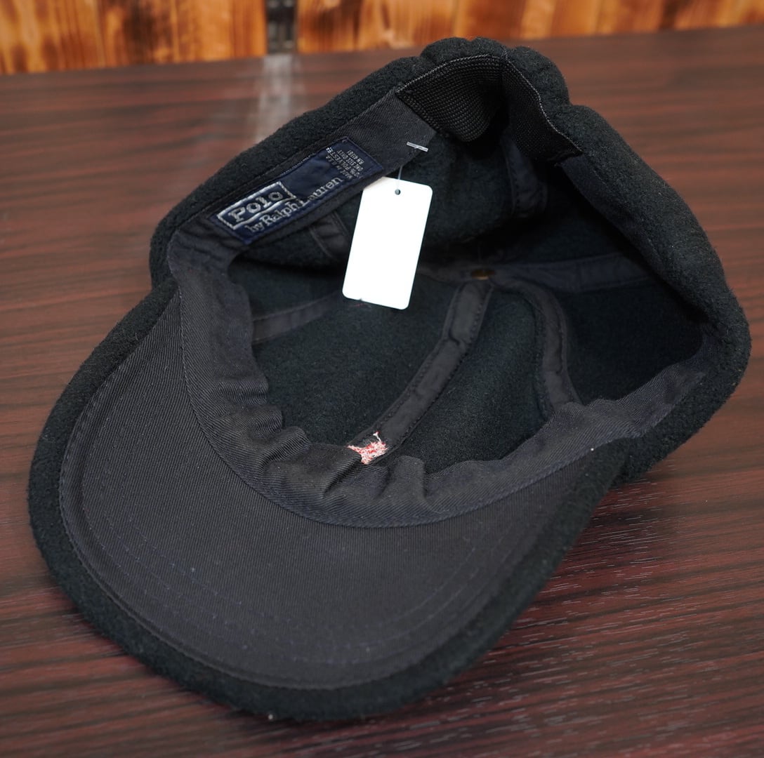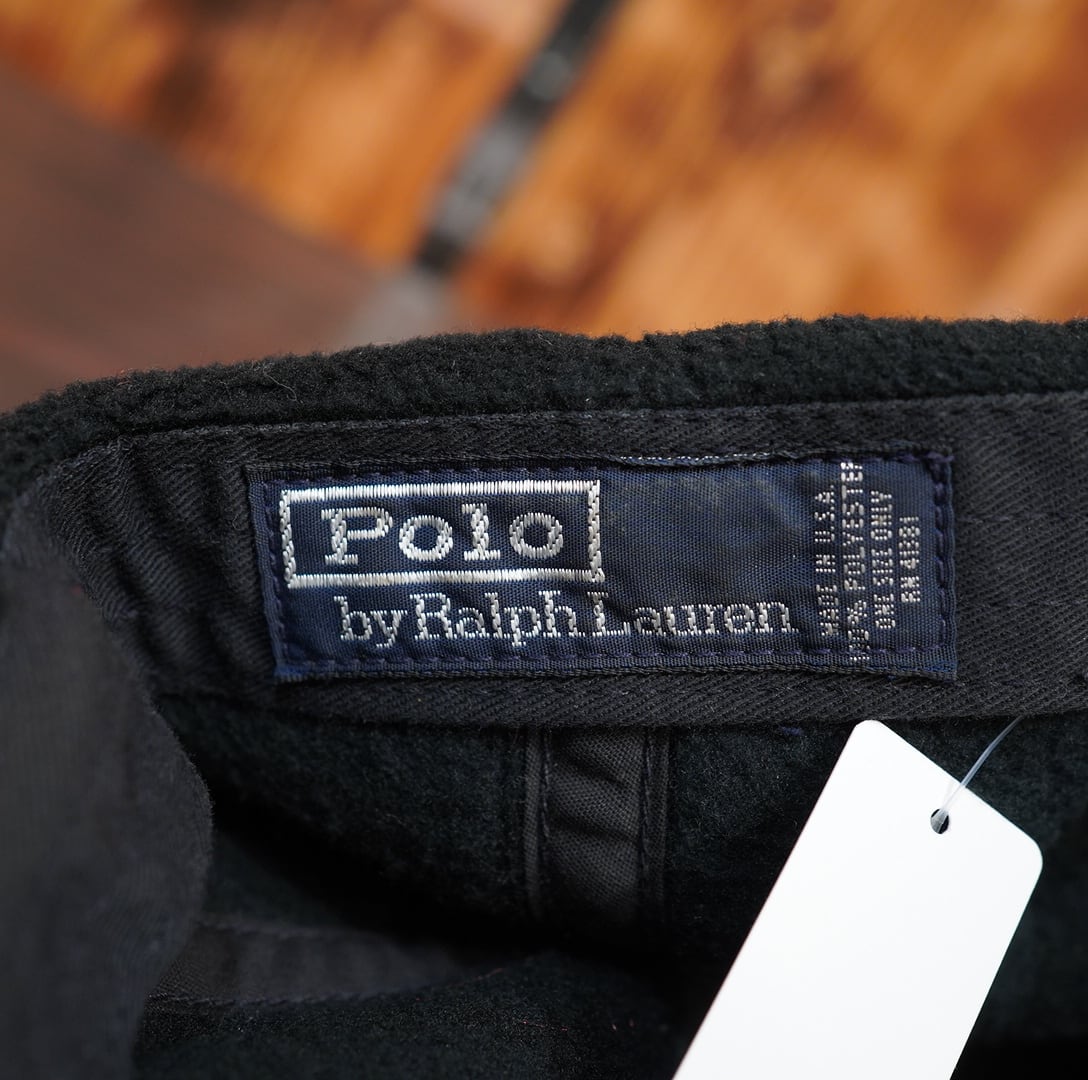 90s USA製 Polo Ralph Lauren フリース キャップ 黒 ブラック 帽子 ラルフローレン