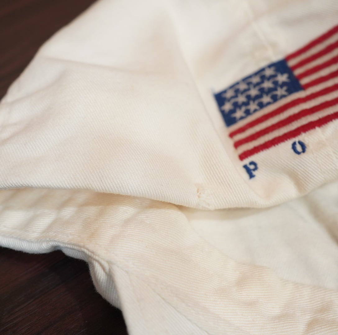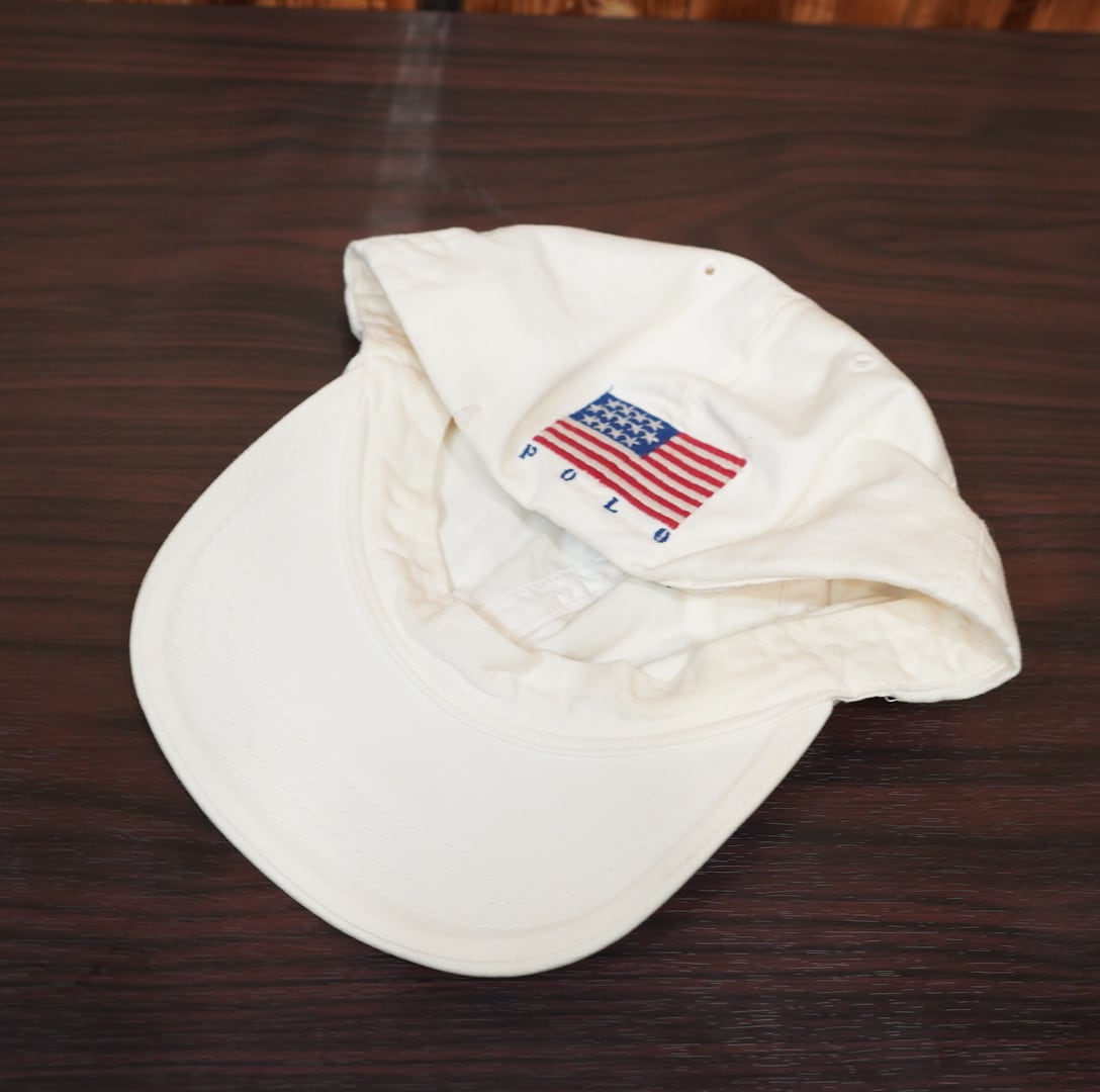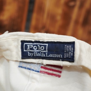 90s USA製 Polo Ralph Lauren キャップ XL/帽子 ラルフローレン 白 星条旗