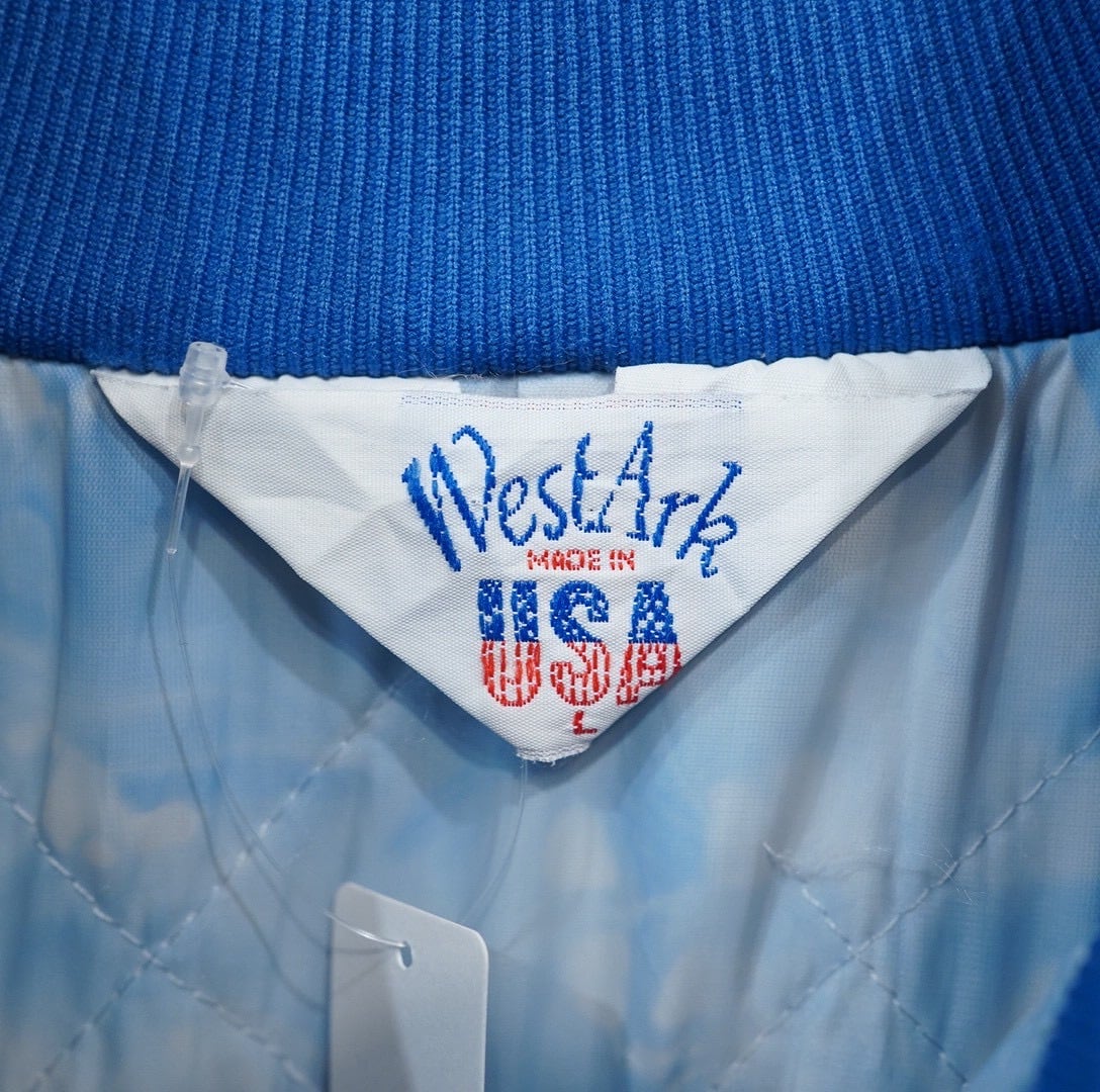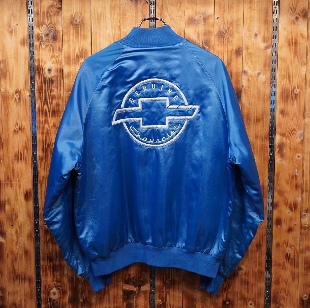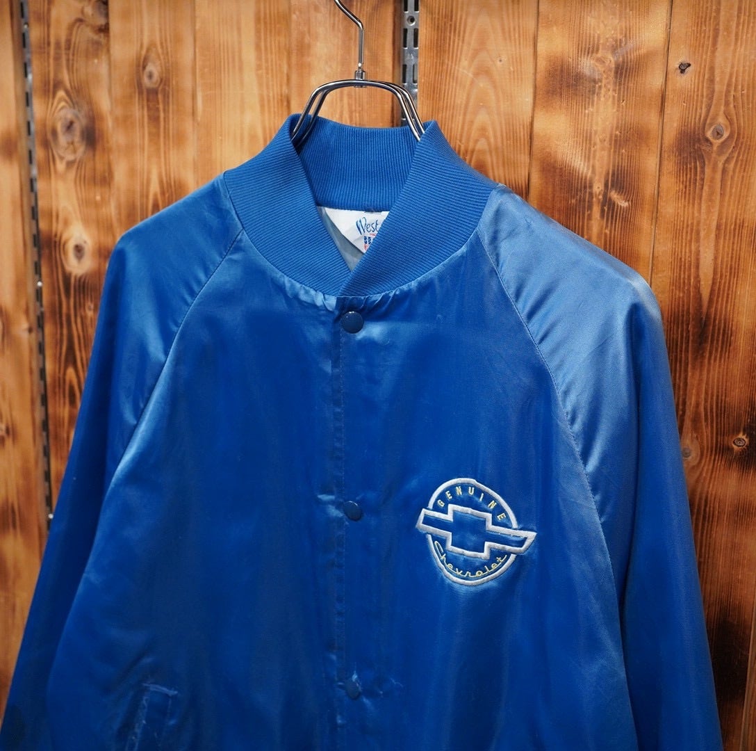 80s USA製 WESTARK genuine chevrolet シボレー ナイロン 中綿サテンスタジャン L/ブルー