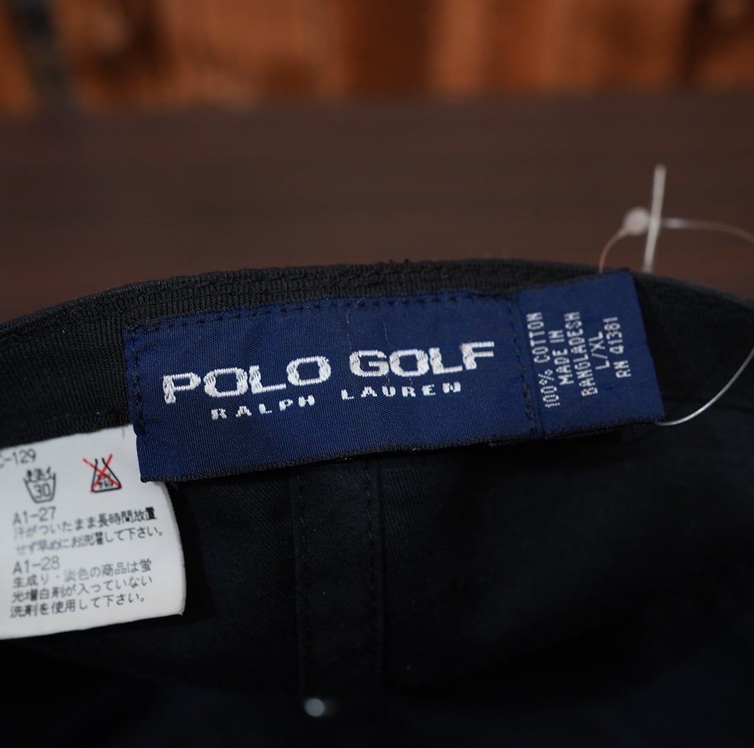 90s ralphlauren pologolf オールブラック fitted キャップ L/XL /ラルフローレン ポロゴルフ レアモデル 黒 帽子