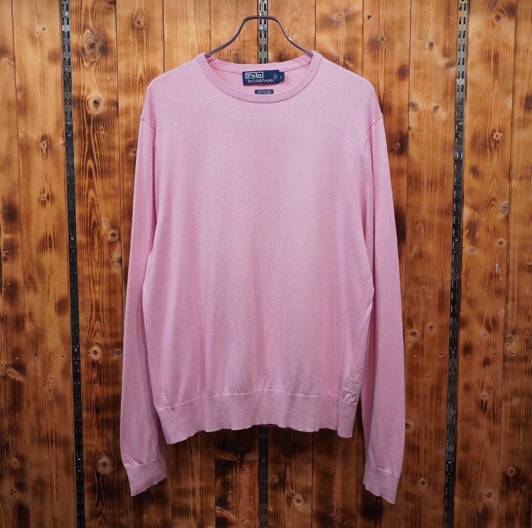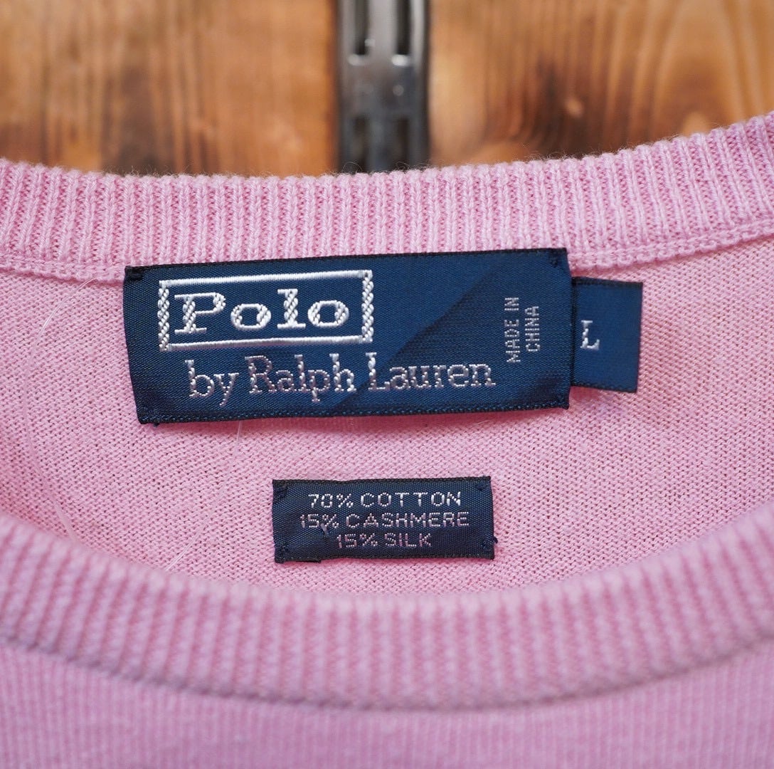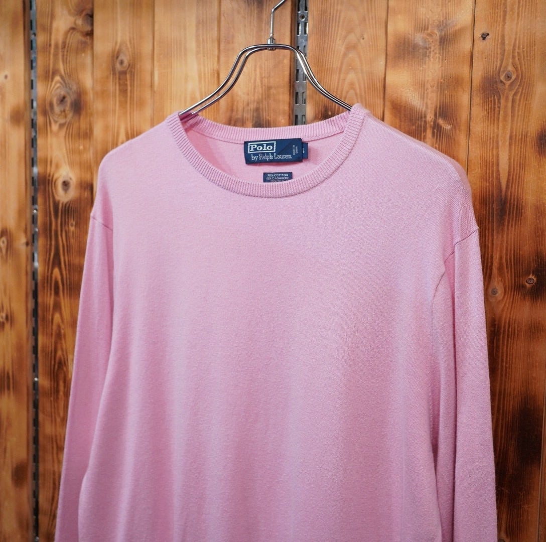 ralphlauren カシミヤ シルク コットン ピンク クルーネック ニット L/ラルフローレン