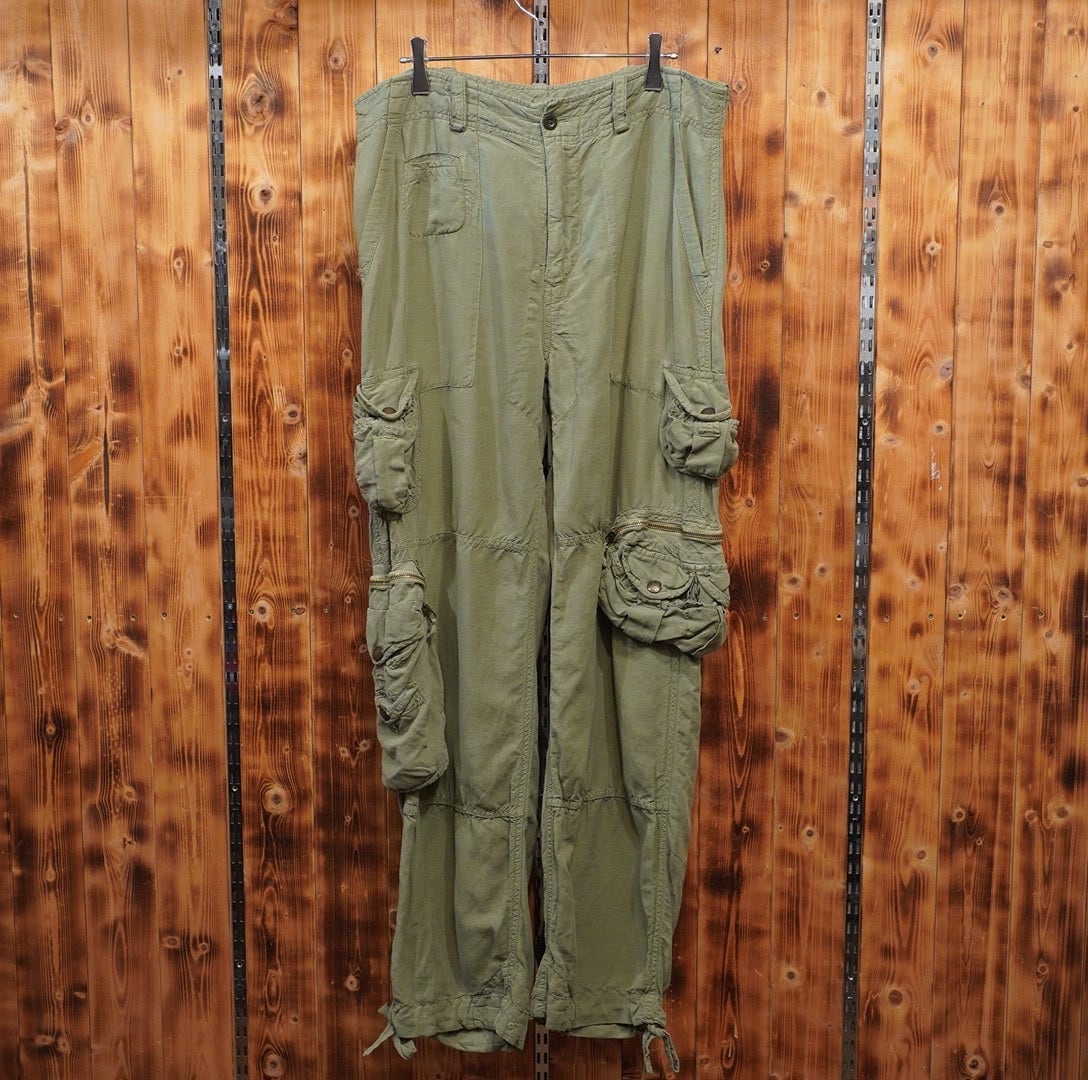 ralphlauren シルクリネン カーゴパンツ W34/ ラルフローレン パラシュートパンツ