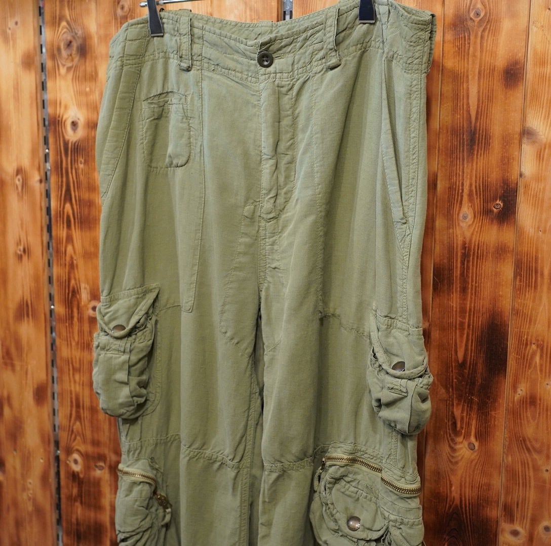 貴重なリネンシルクのカーゴパンツ
