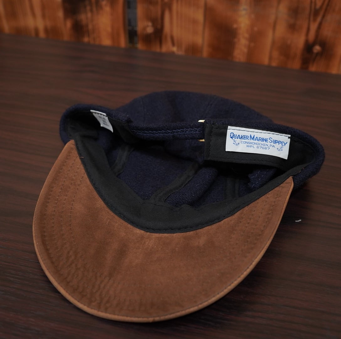 quaker marine supply ロングビル ジェットキャップ つばレザー ウール one size キャップ USA製