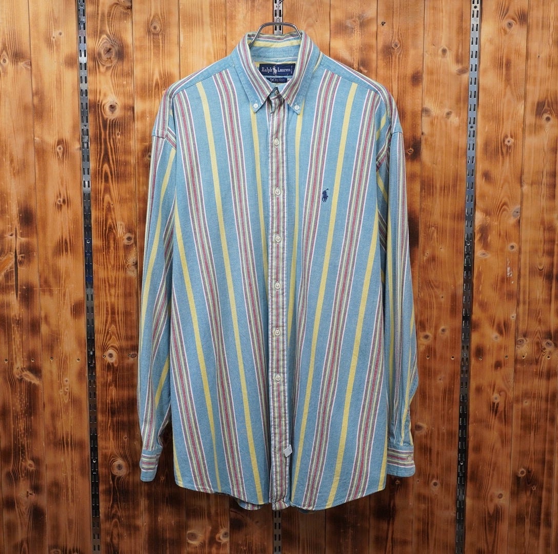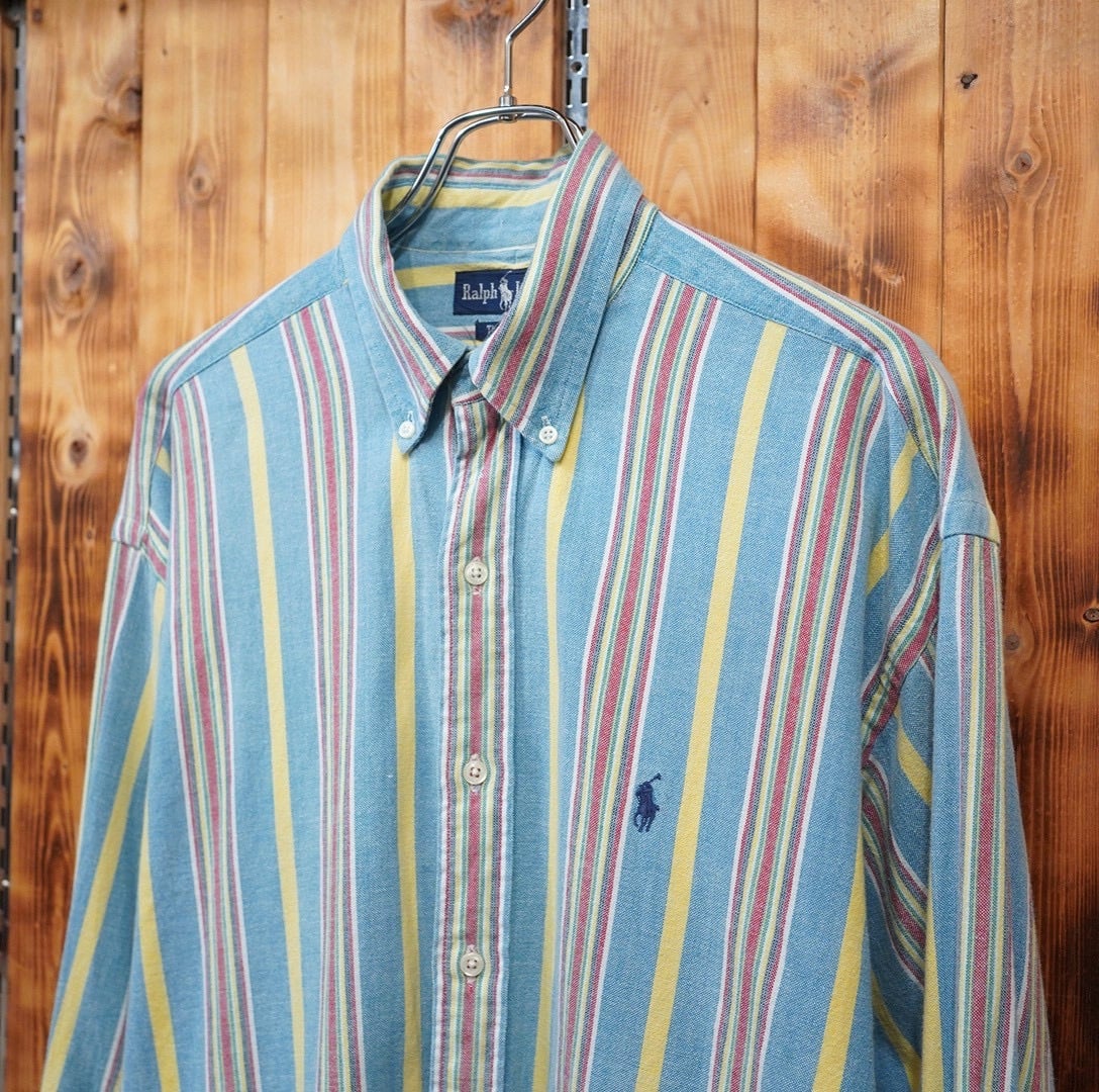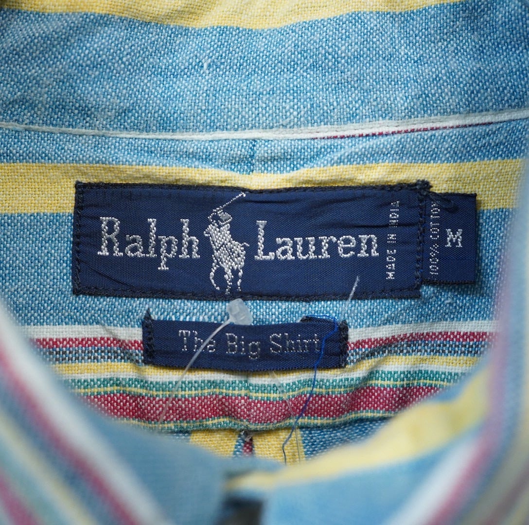 90s ralphlauren the big shirt インド綿 ストライプシャツ M/ ラルフローレン