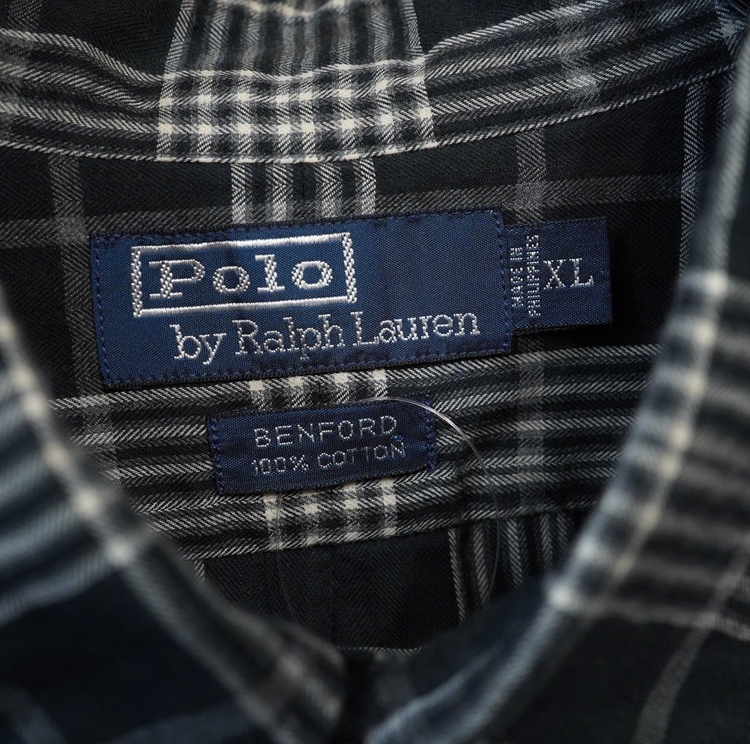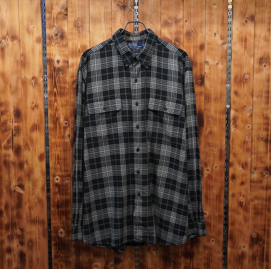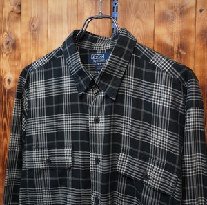 90s ralphlauren benford 黒白 チェックシャツ XL / ラルフローレン