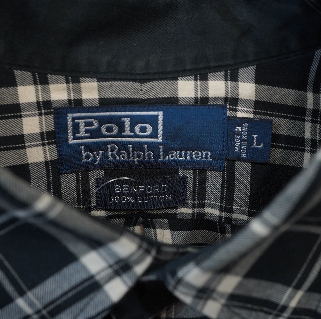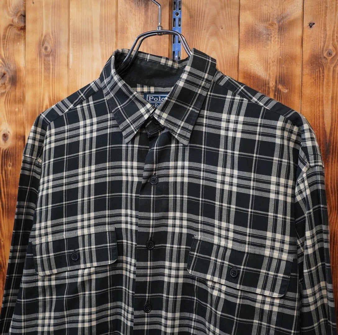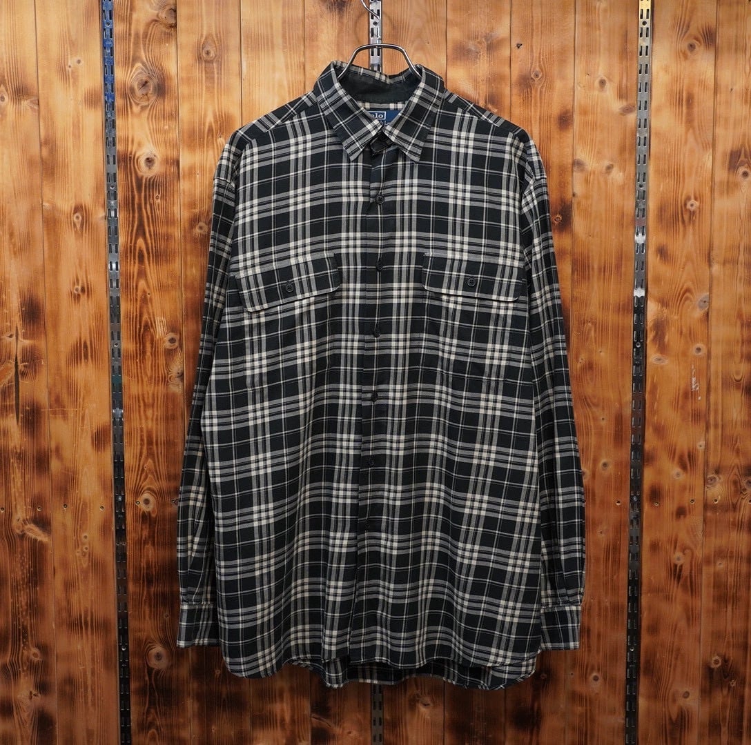 90s ralphlauren benford 黒白 チェックシャツ L/ラルフローレン
