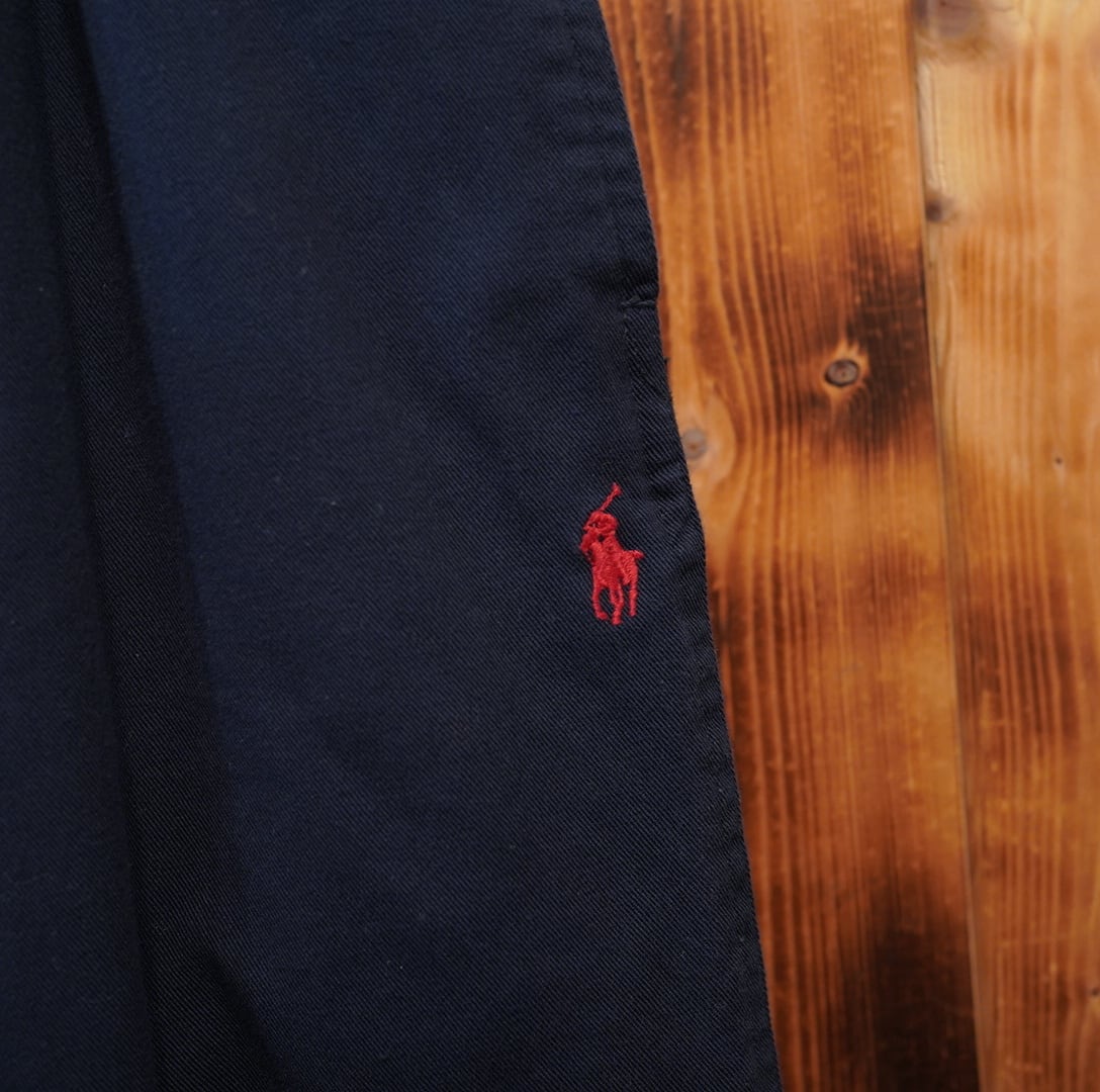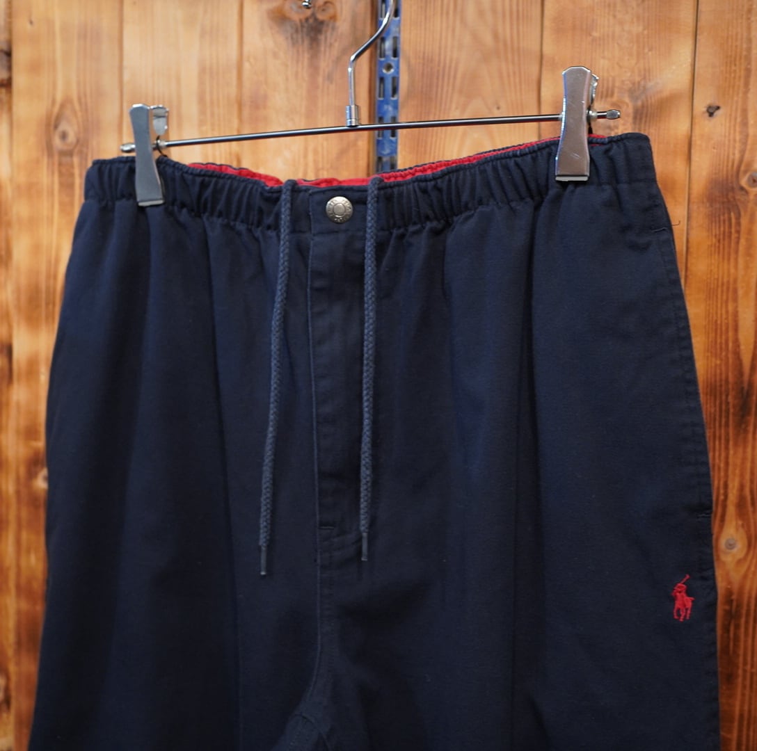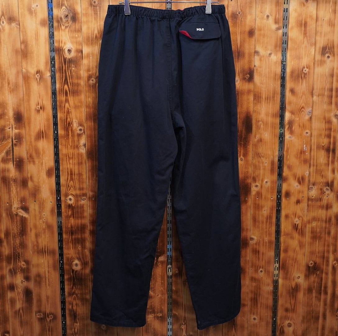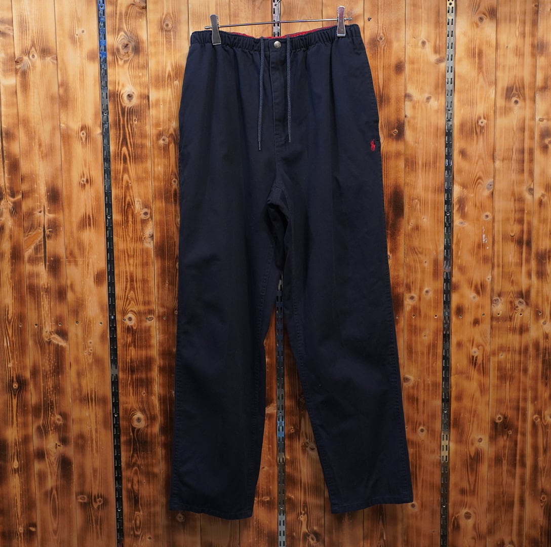 90s ralphlauren ウエストゴム イージーパンツ M/ラルフローレン ネイビー