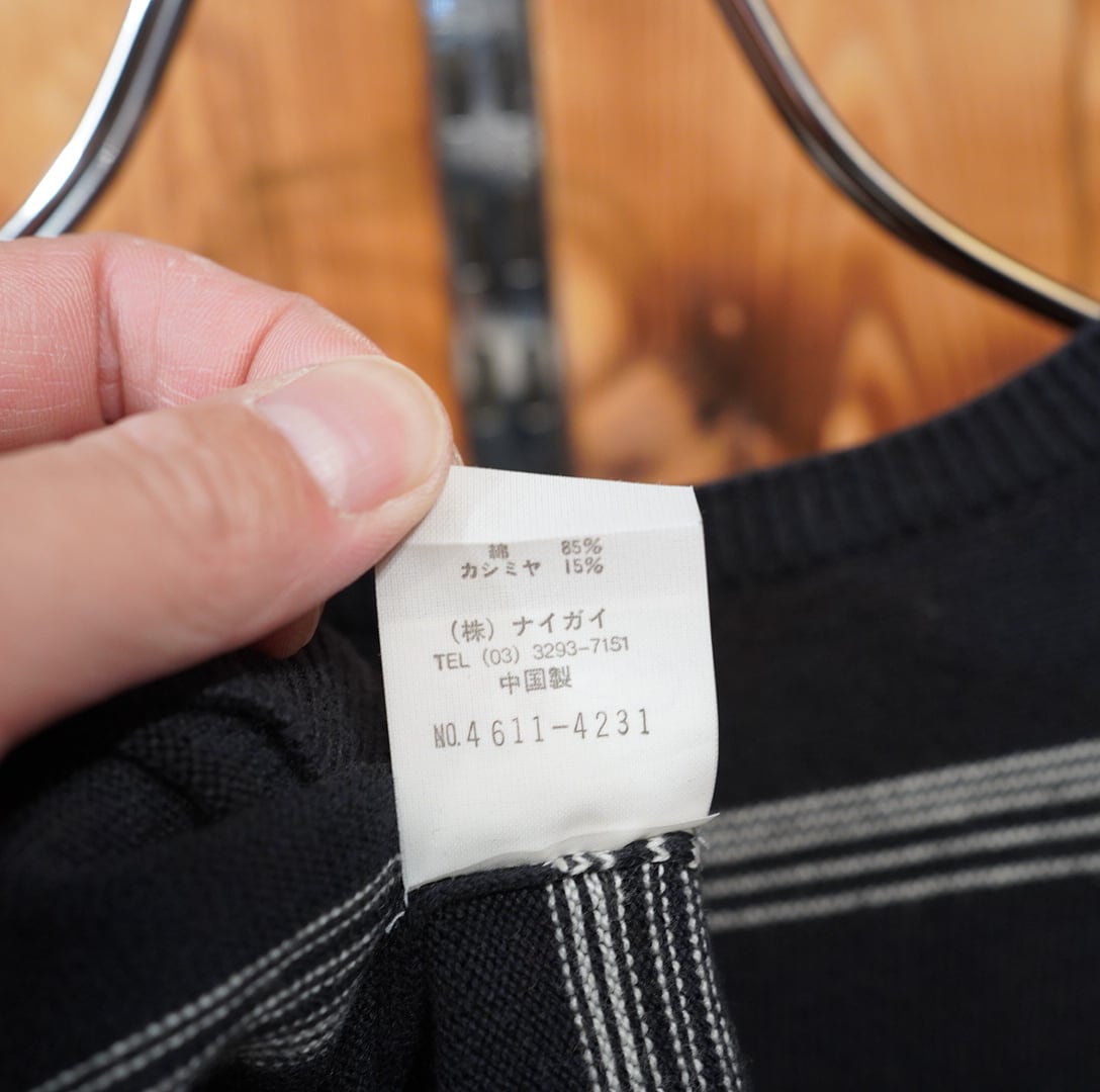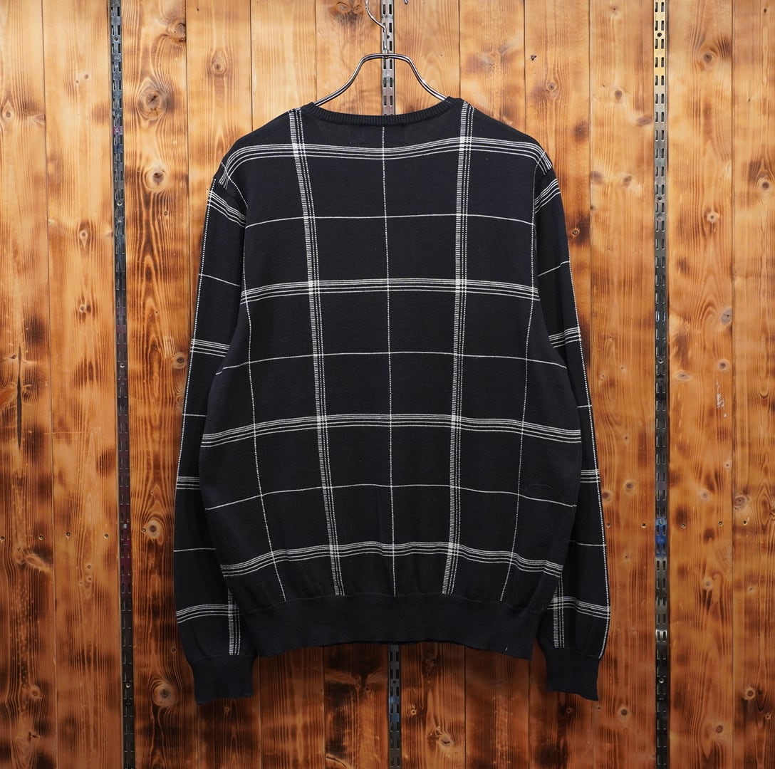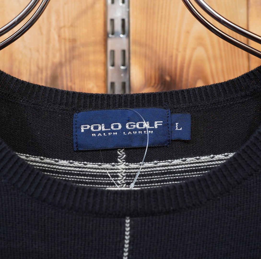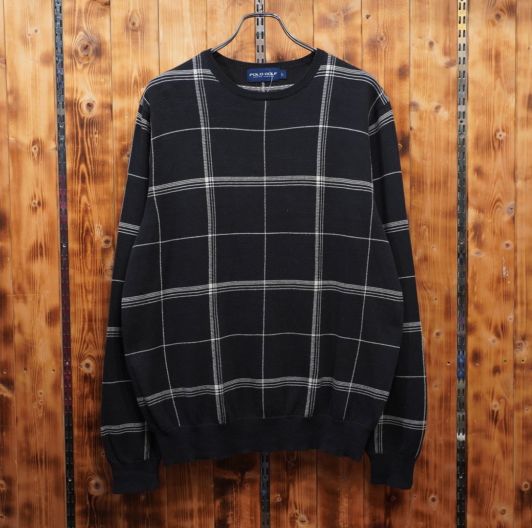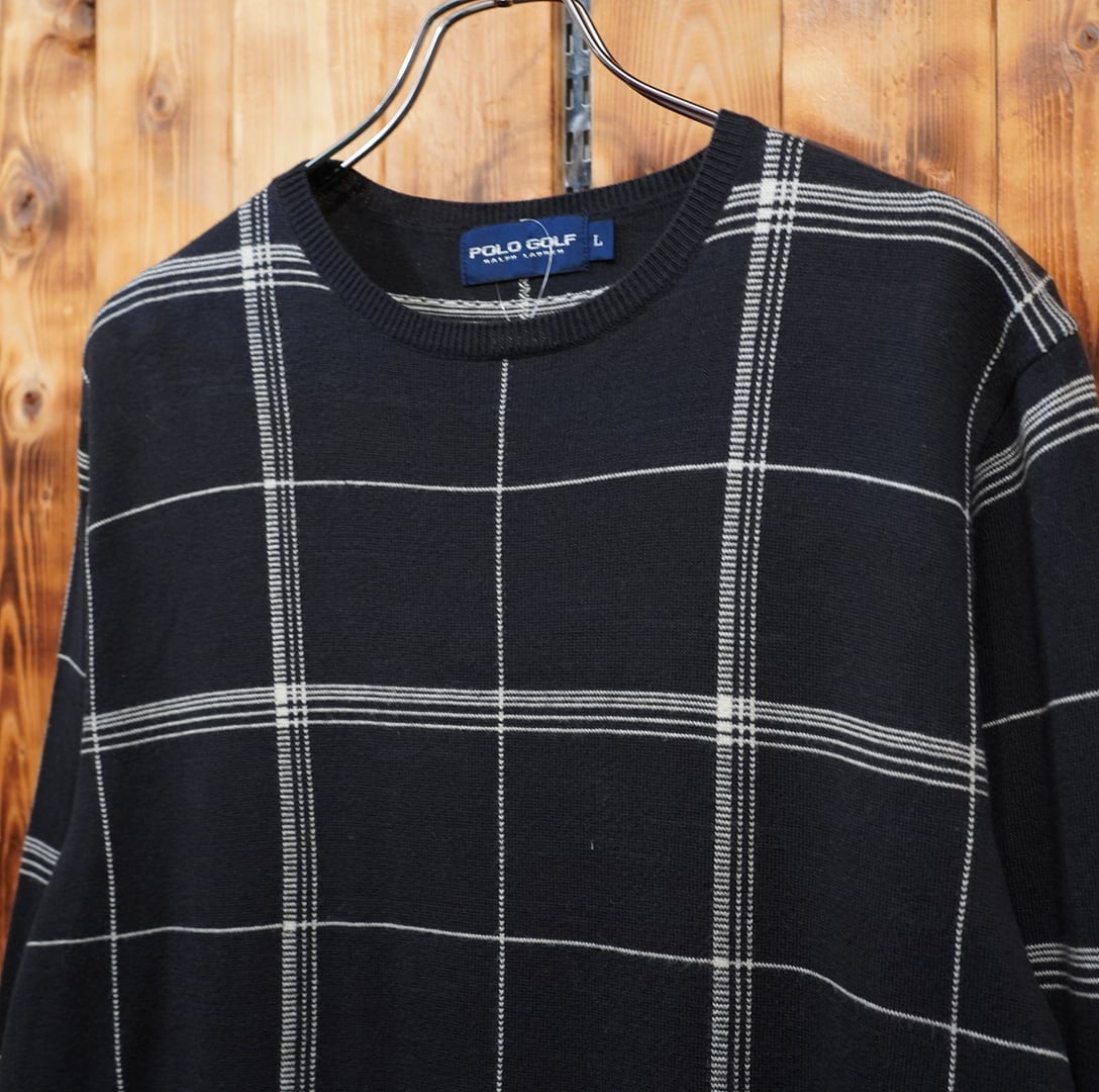 90s ralphlauren コットン カシミヤ プルオーバー クルーネック ニット L/ブラック 黒白 セーター ラルフローレン