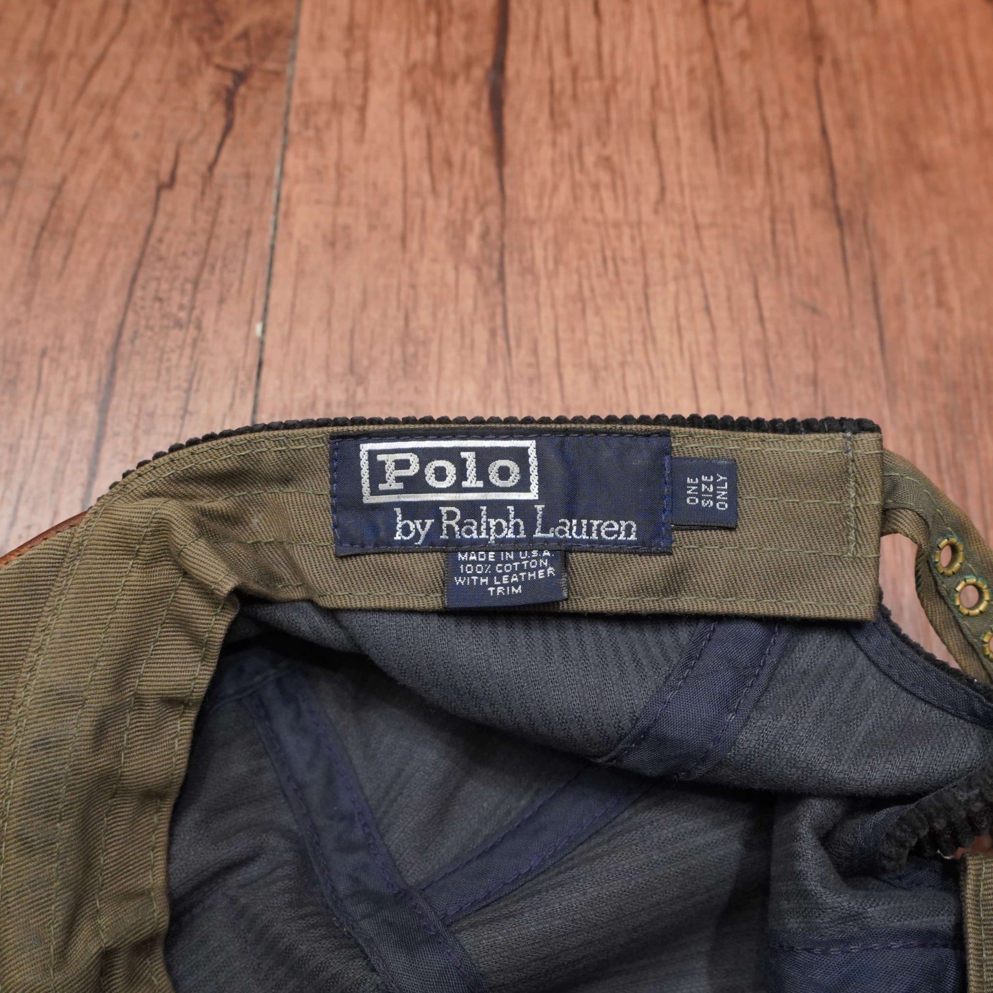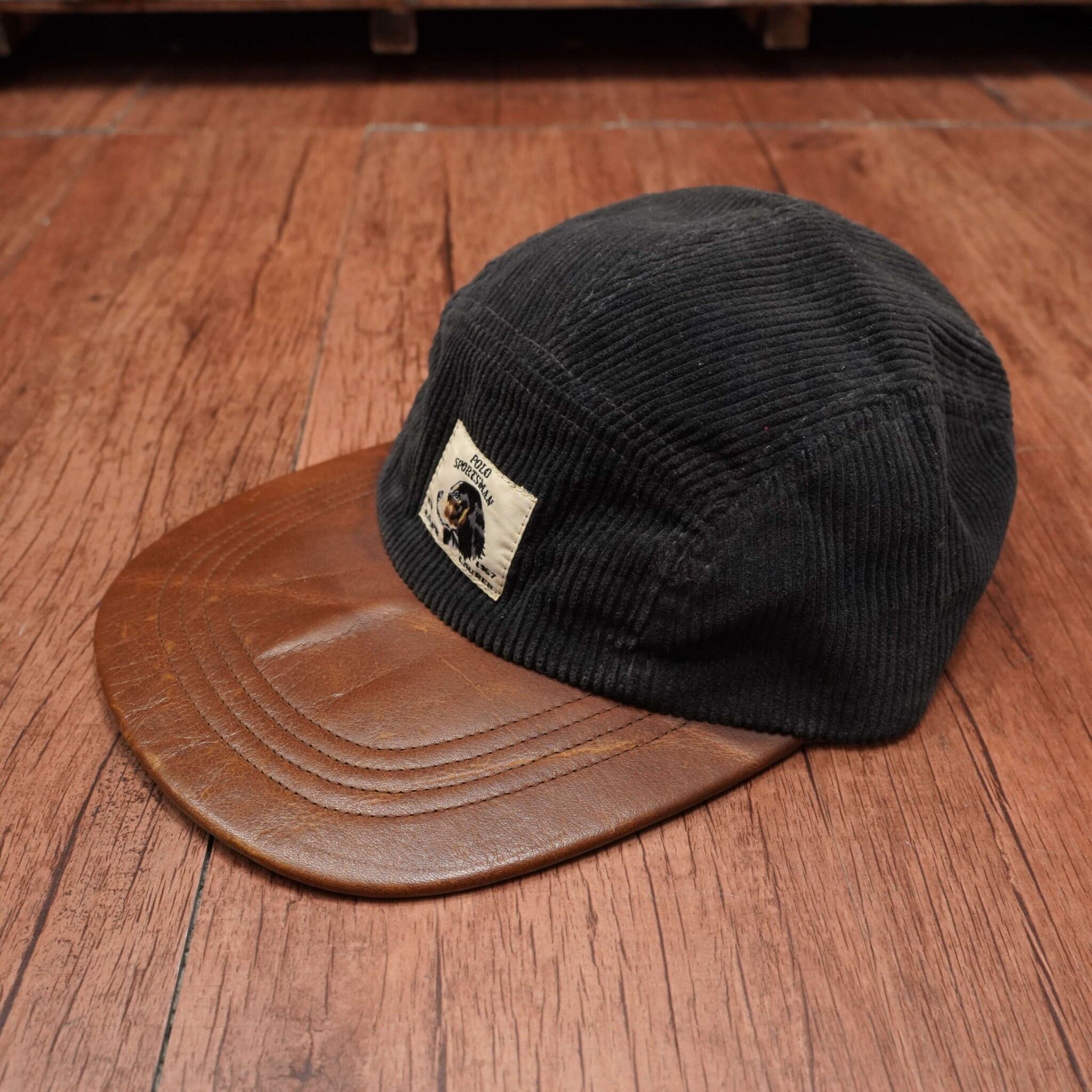 90s ralphlauren キャップ 5パネル つばレザー コーデュロイ polosportsman 犬 ヴィンテージ ラルフローレン 帽子 usa製