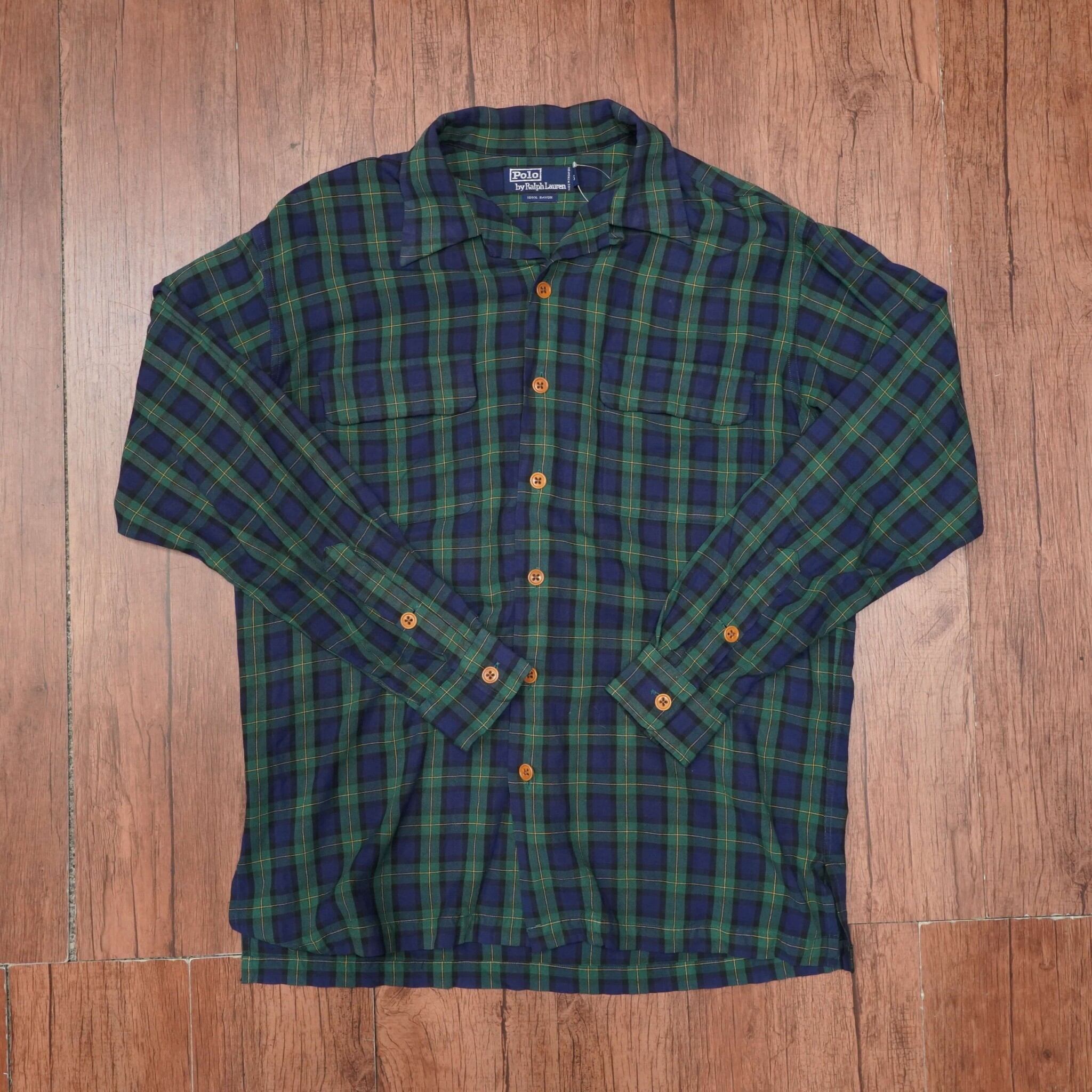 ralphlauren 開襟シャツ S/レーヨンシャツ ラルフローレン オープンカラーシャツ 長袖シャツ チェック 90s