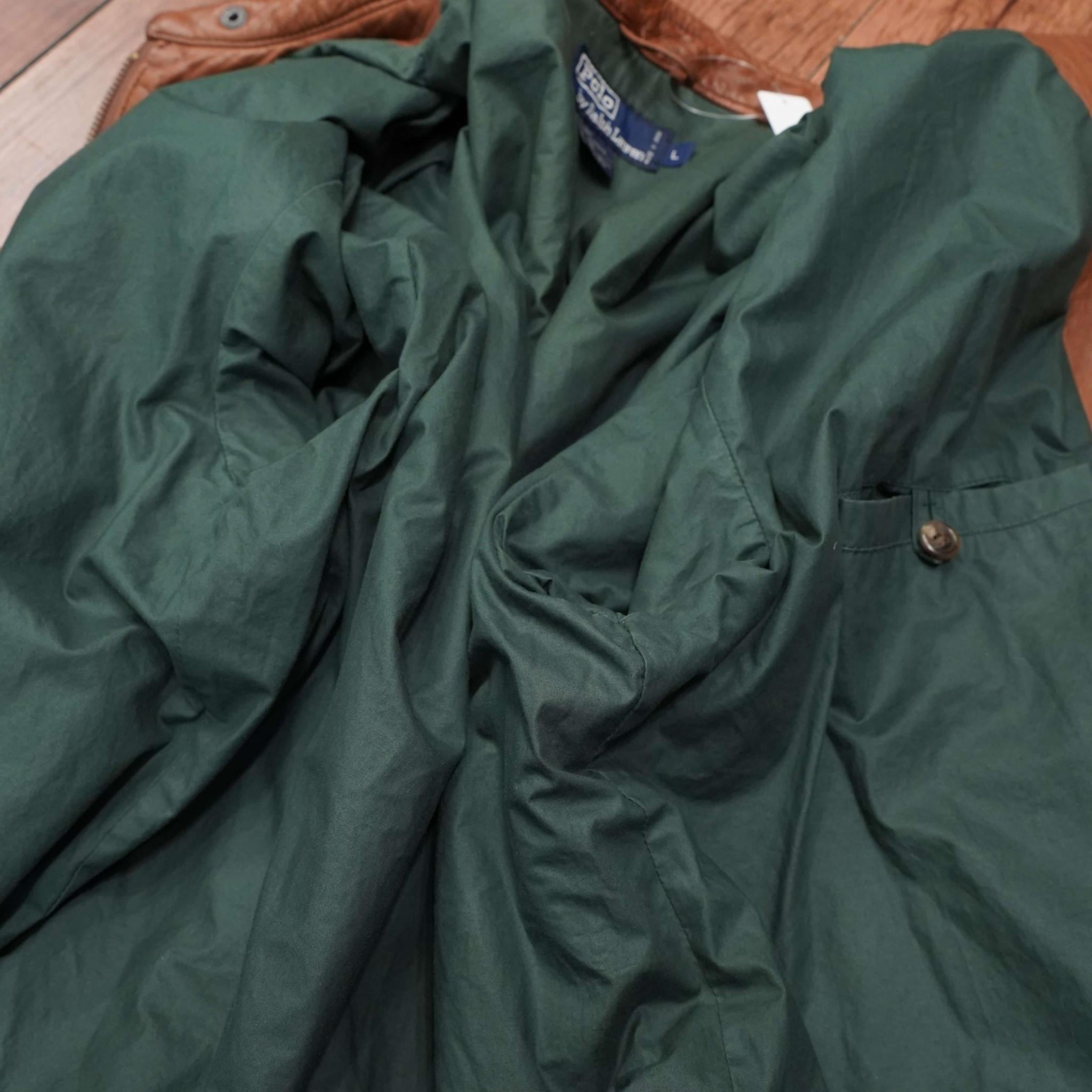 90s ralphlauren ポニー無し レザージャケット L/ラルフローレン スウィングトップ 完全無地