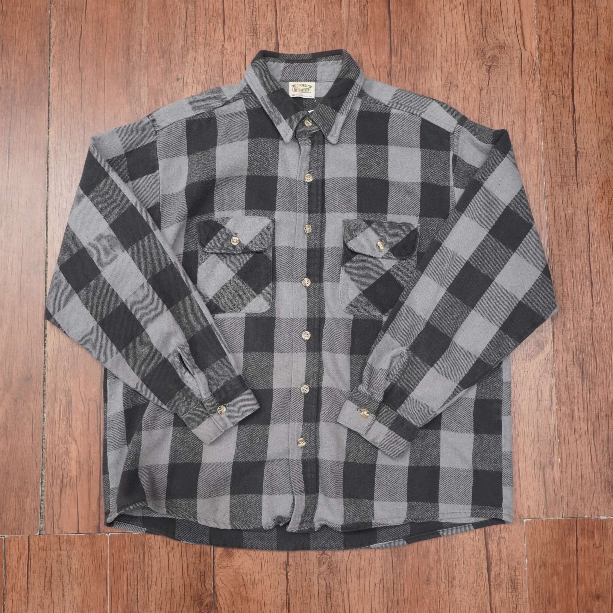 five brother ヘビー ネルシャツ XL/90s 黒 グレー ファイブブラザー usa製