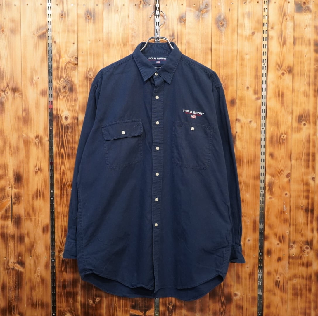 90s polosport シャツ ネイビー L/ralphlauren ラルフローレン ポロスポーツ