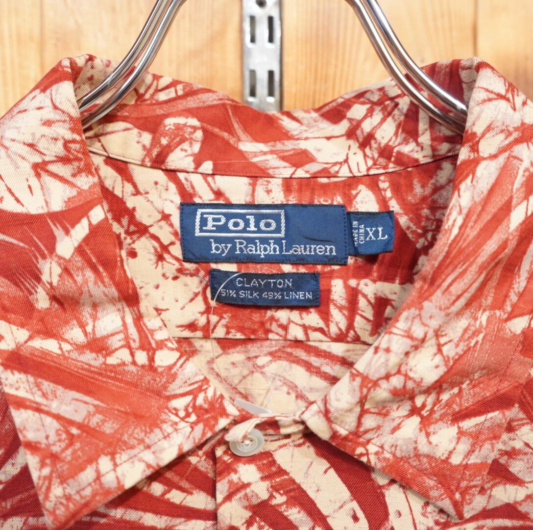 ralphlauren 開襟シャツ clayton シルク リネン XL/ラルフローレン オープンカラーシャツ