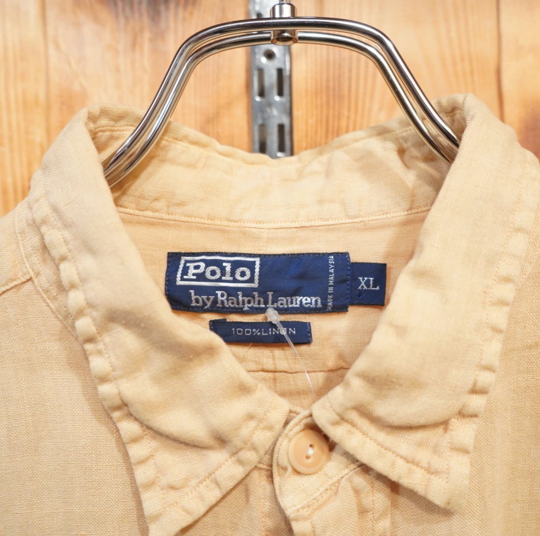 90s ralphlauren リネン オープンカラーシャツ XL/ラルフローレン 開襟シャツ