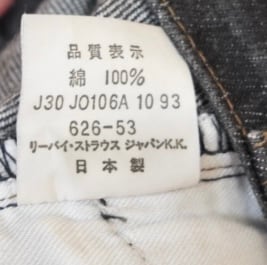 90s Levi's 626 ブラックデニム W34 日本製 先染め リーバイス 黒 ジーンズ