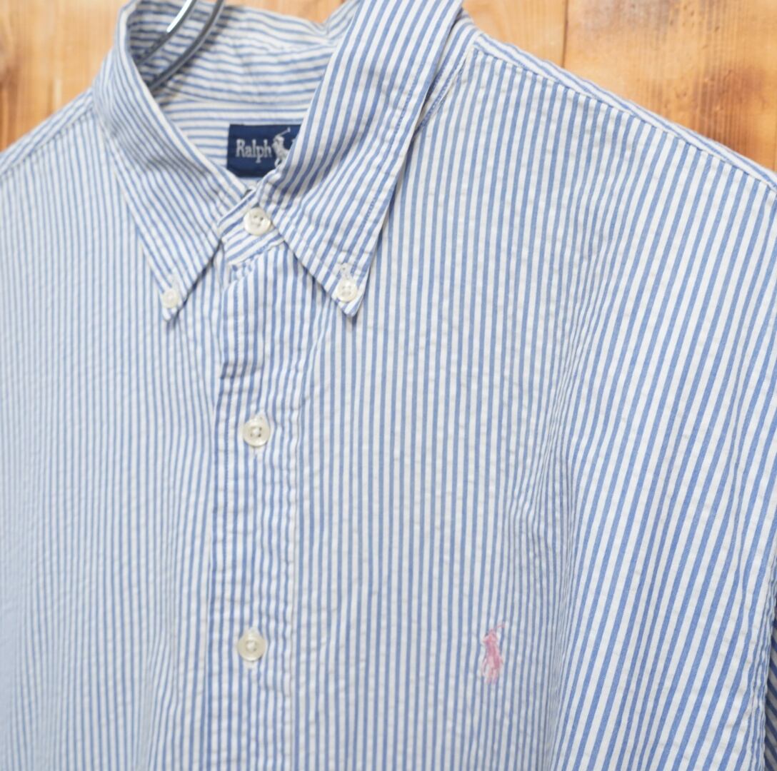 90s ralphlauren シアサッカー 長袖シャツ XL/ラルフローレン