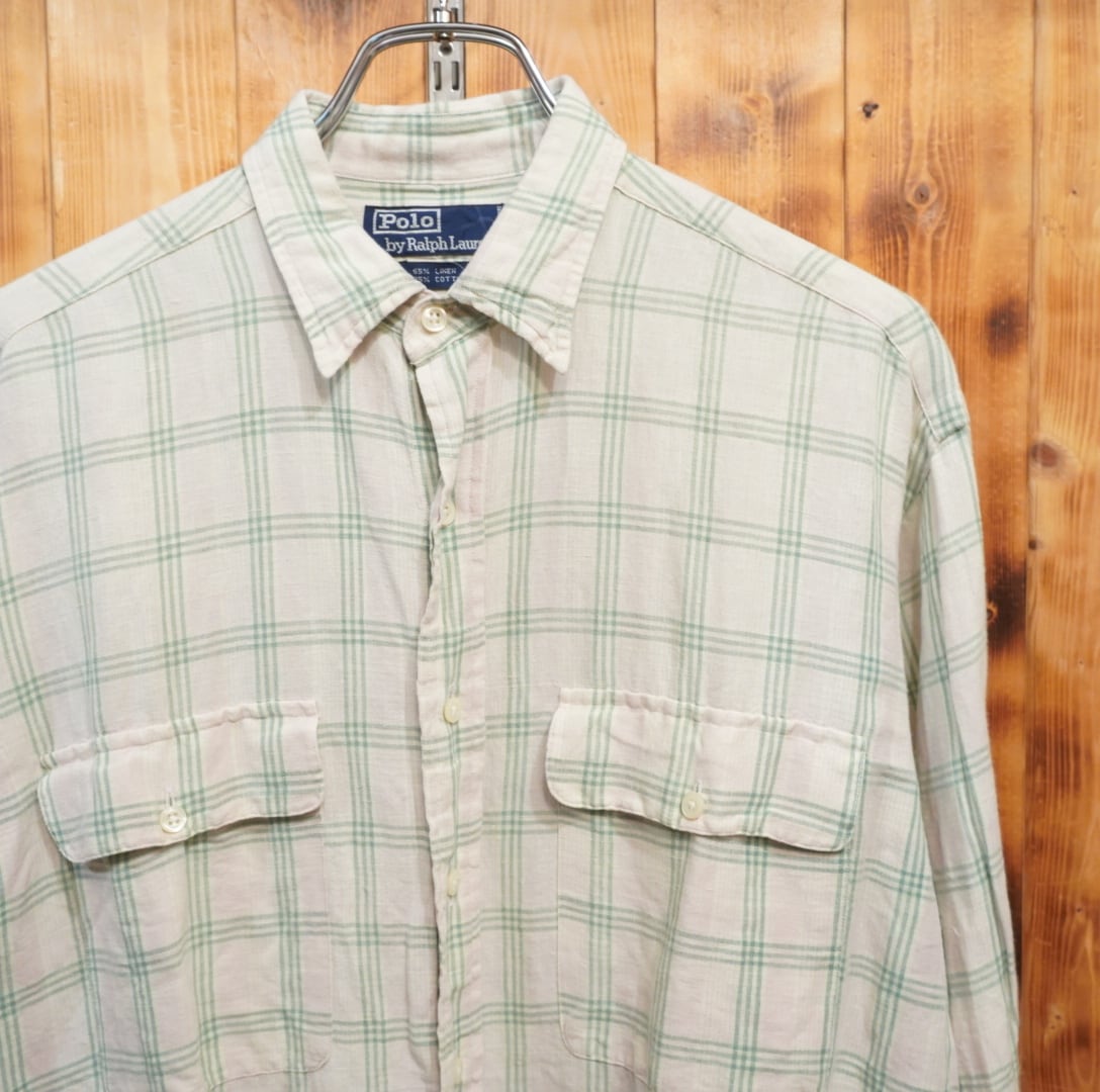 90s ralphlauren linen cotton リネン コットン シャツ S/ラルフローレン