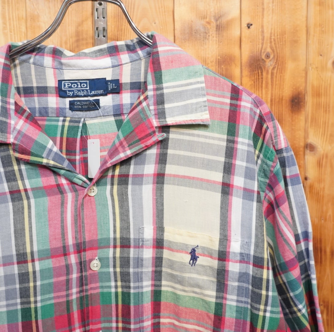 90s ralphlauren caldwell 開襟シャツ L/チェック オープンカラーシャツ ラルフローレン