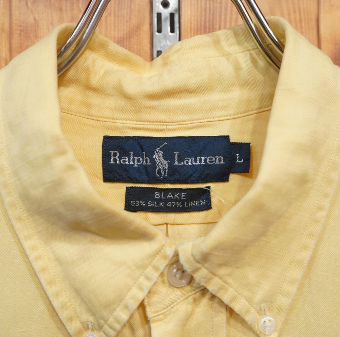 90s ralphlauren blake 半袖シャツ シルク リネン L/ラルフローレン