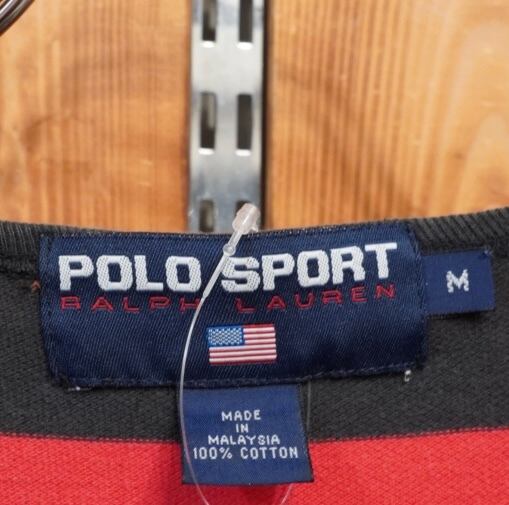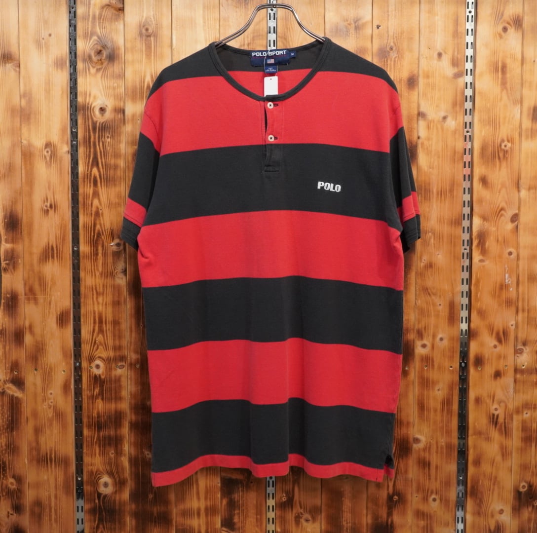 90s polosport ralphlauren ボーダー ヘンリーネック Tシャツ M/ポロスポーツ ラルフローレン