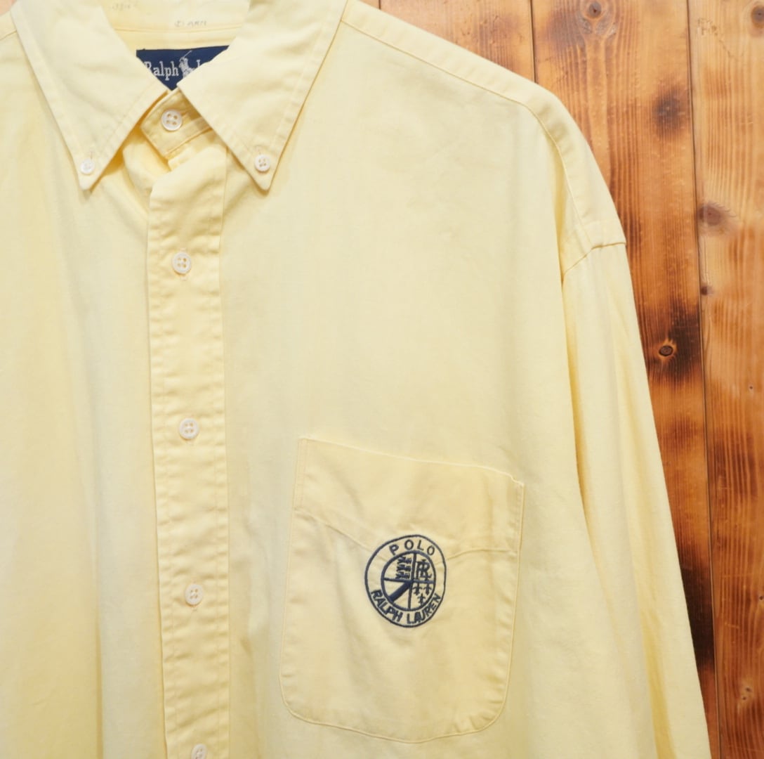 90s ralphlauren クッキーパッチ 刺繍 ボタンダウンシャツ L /ラルフローレン