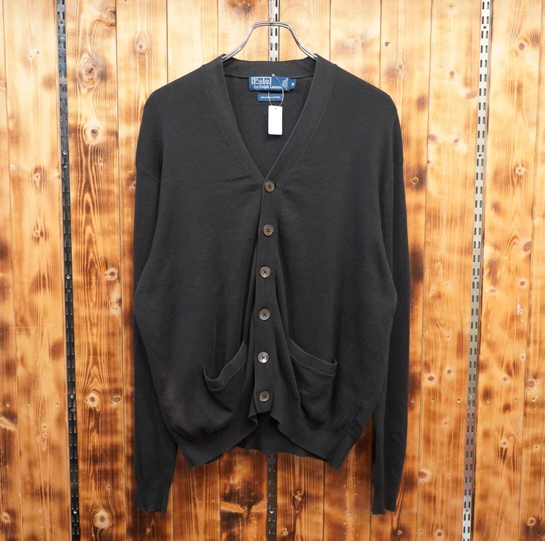ralphlauren pima cotton カーディガン 黒 完全無地 M/ラルフローレン