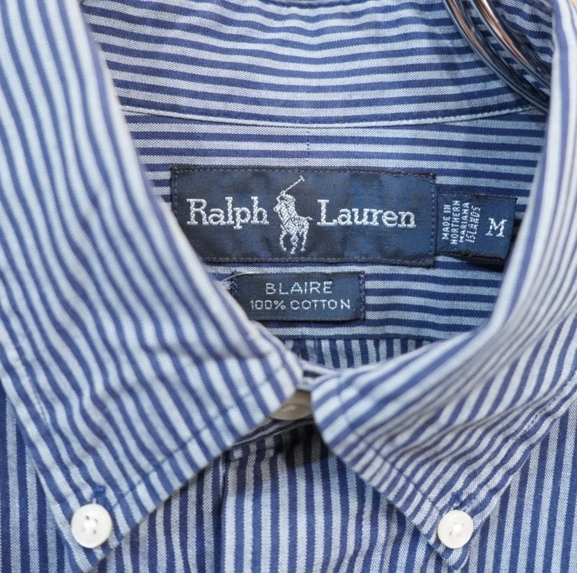90s ralphlauren blaire ストライプ レア柄 長袖 シャツ M/ラルフローレン