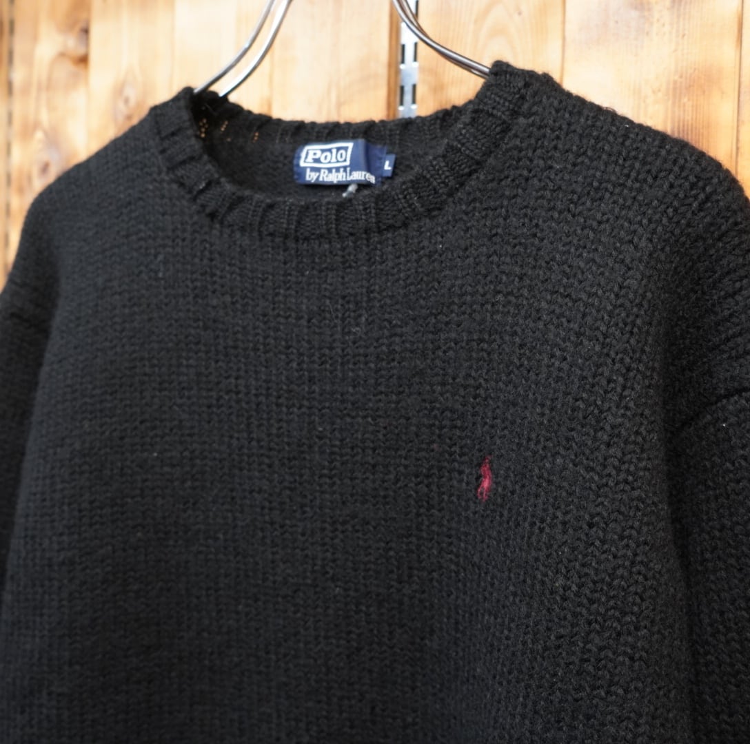 90s ralphlauren 厚手 ウール セーター L/ラルフローレン ブラック 黒