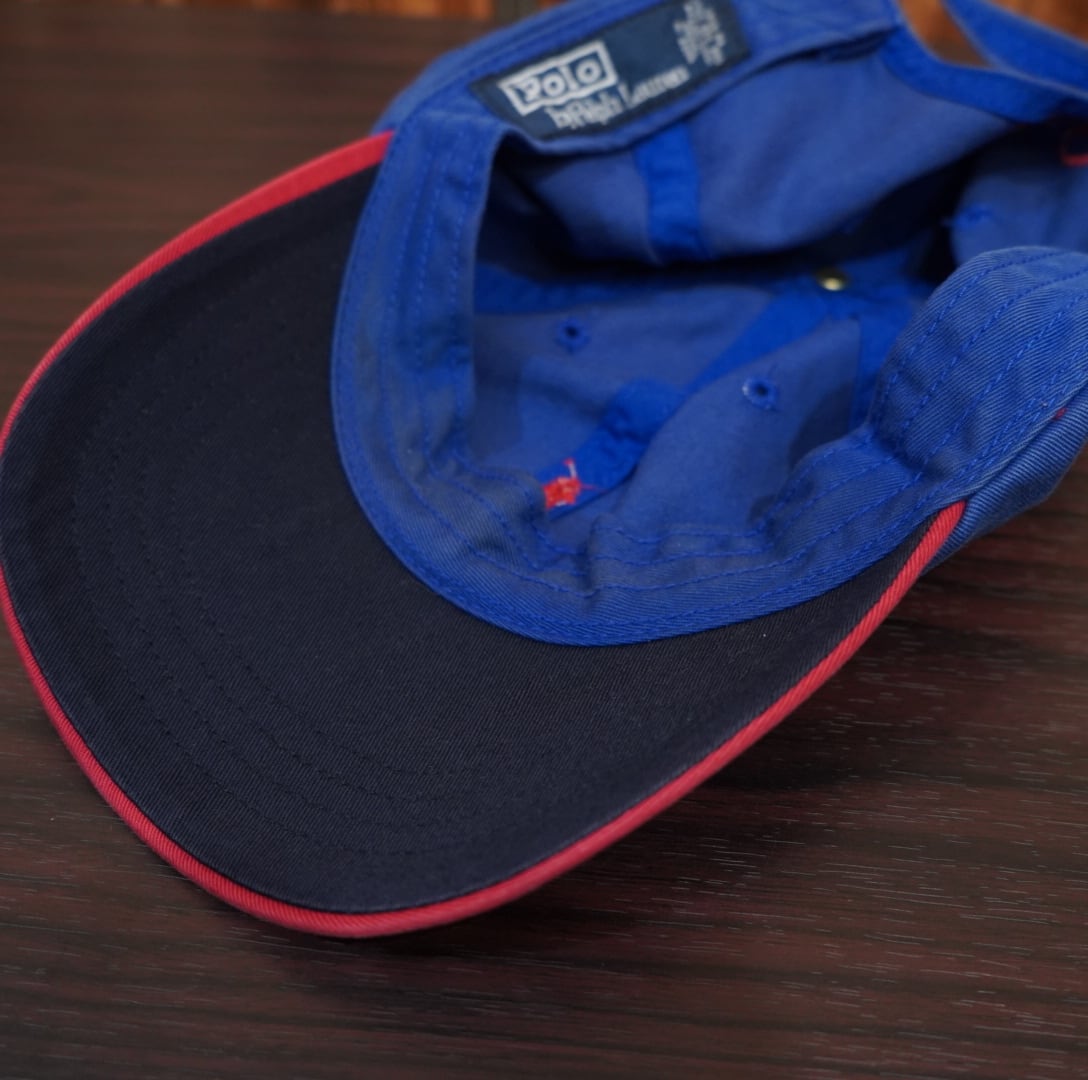 90s ralphlauren ツートン ワンポイント ロゴ キャップ/ラルフローレン ブルー レッド