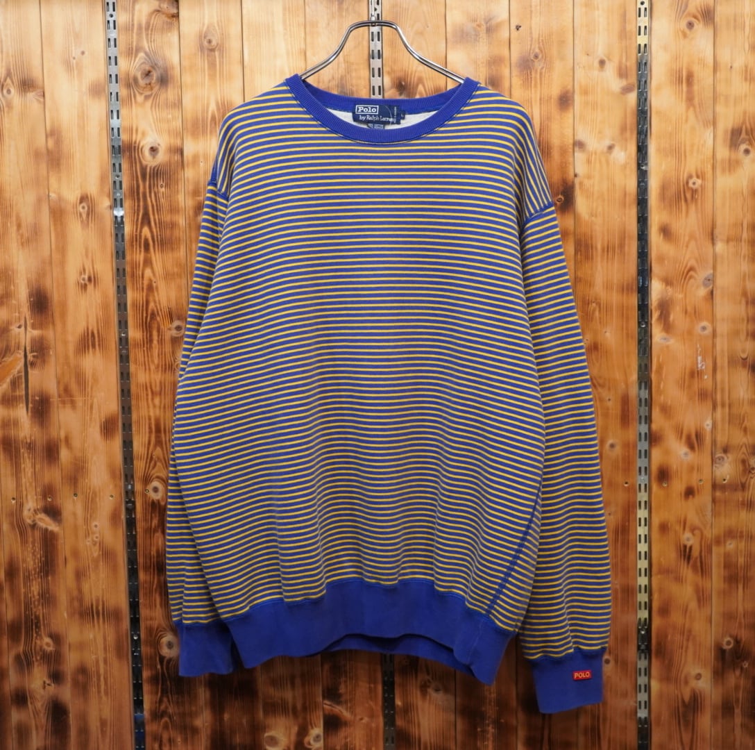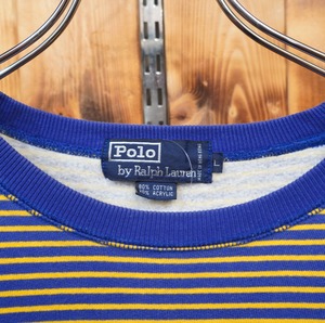 90s ralphlauren ボーダー スウェット L/ラルフローレン ネイビー イエロー